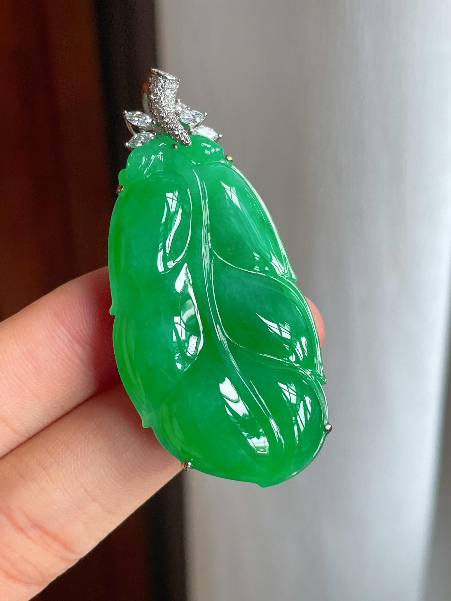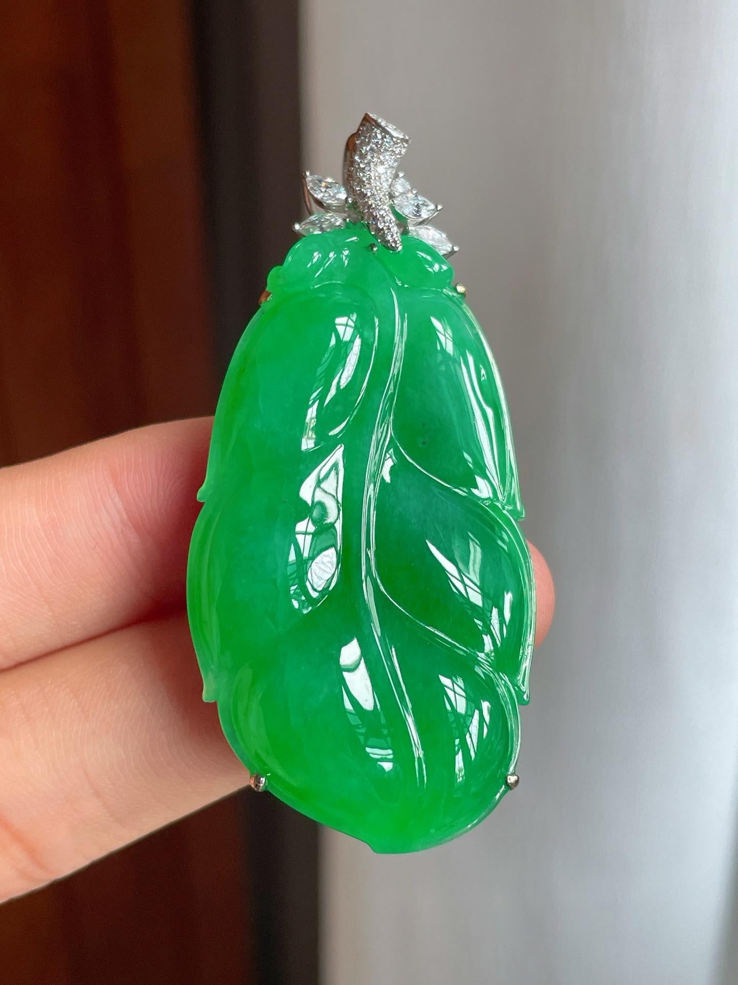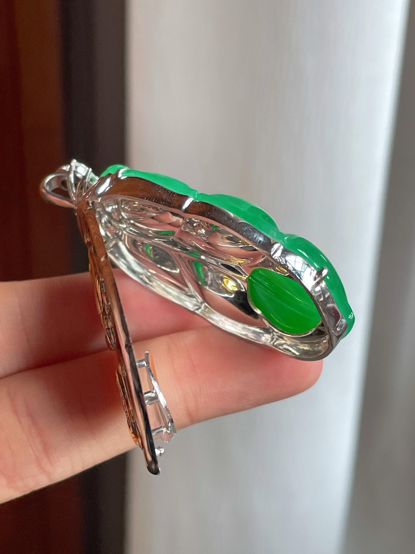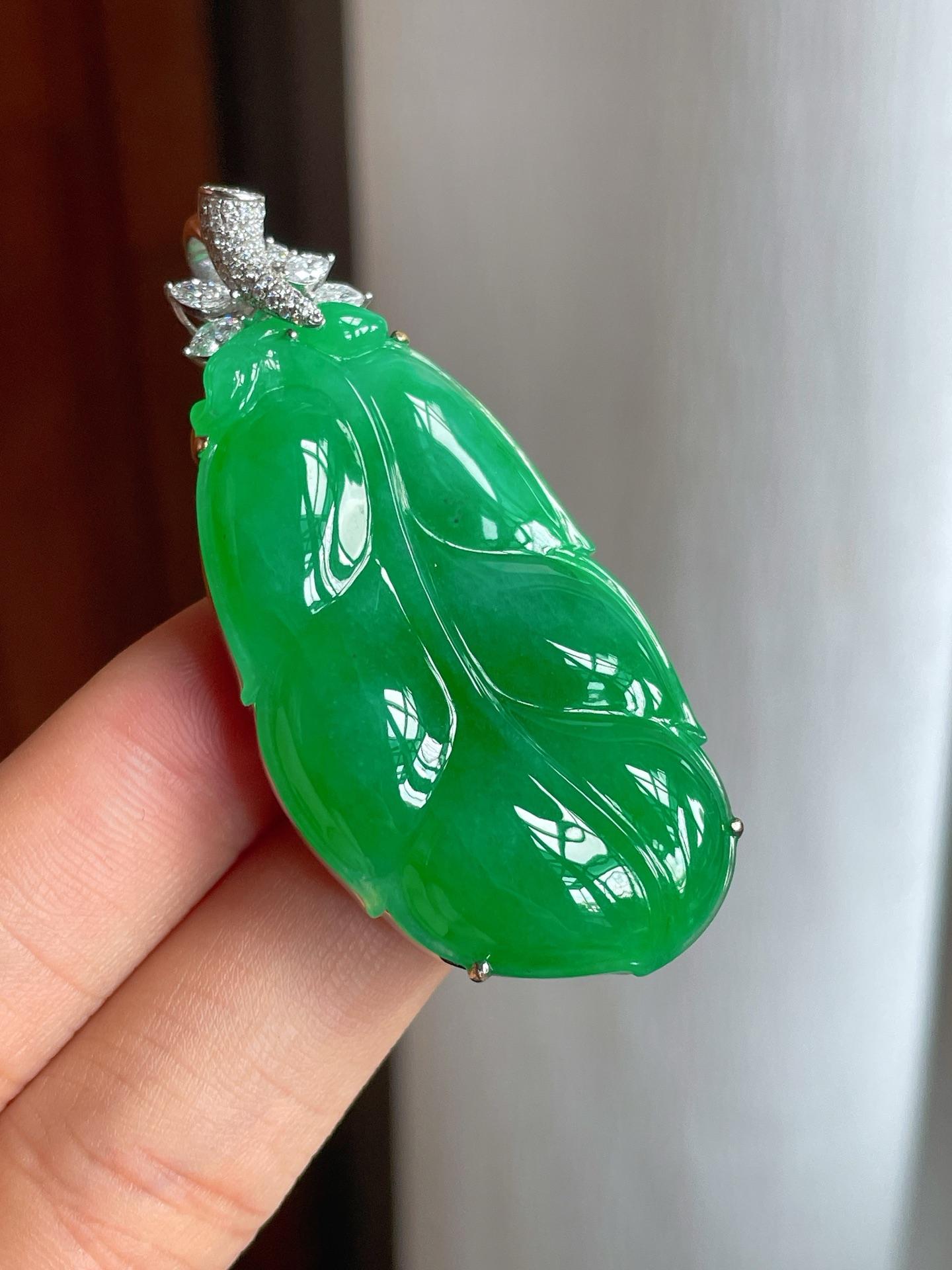 18k金镶冰种满绿翡翠叶子(yc221510) -