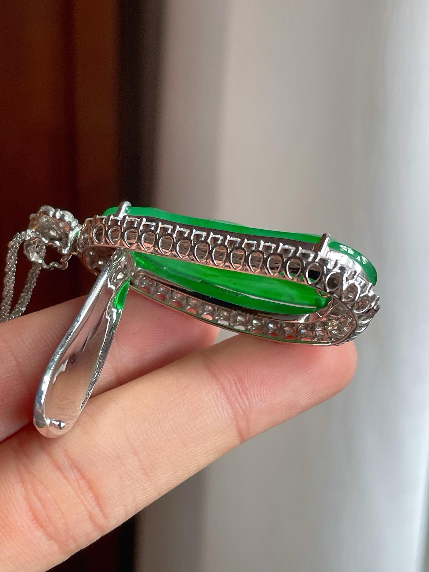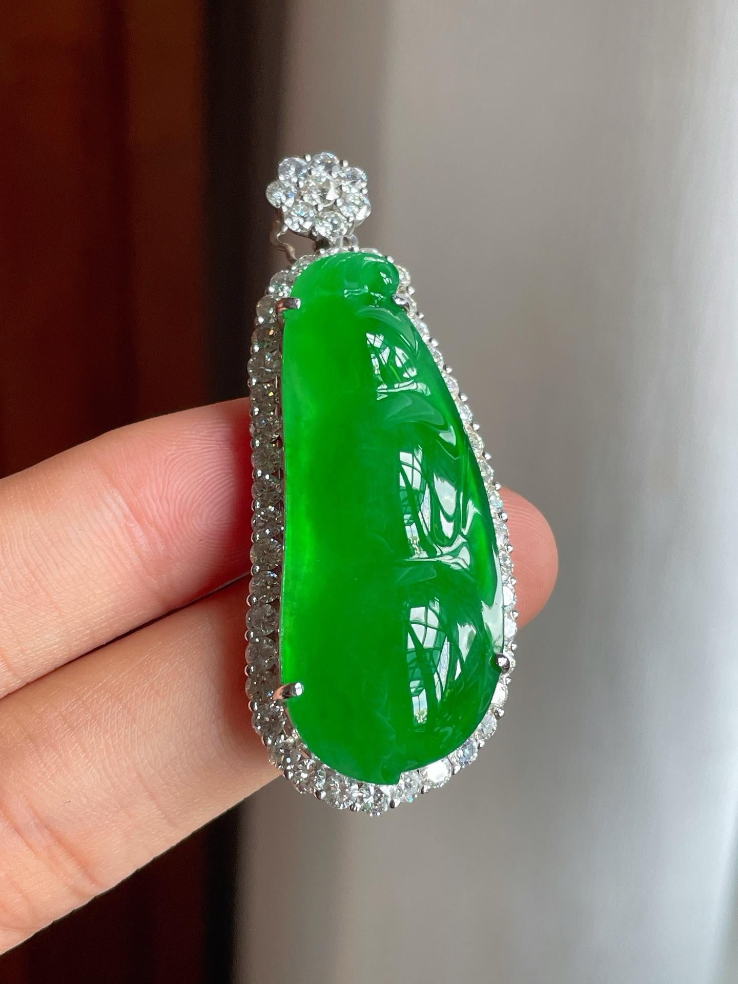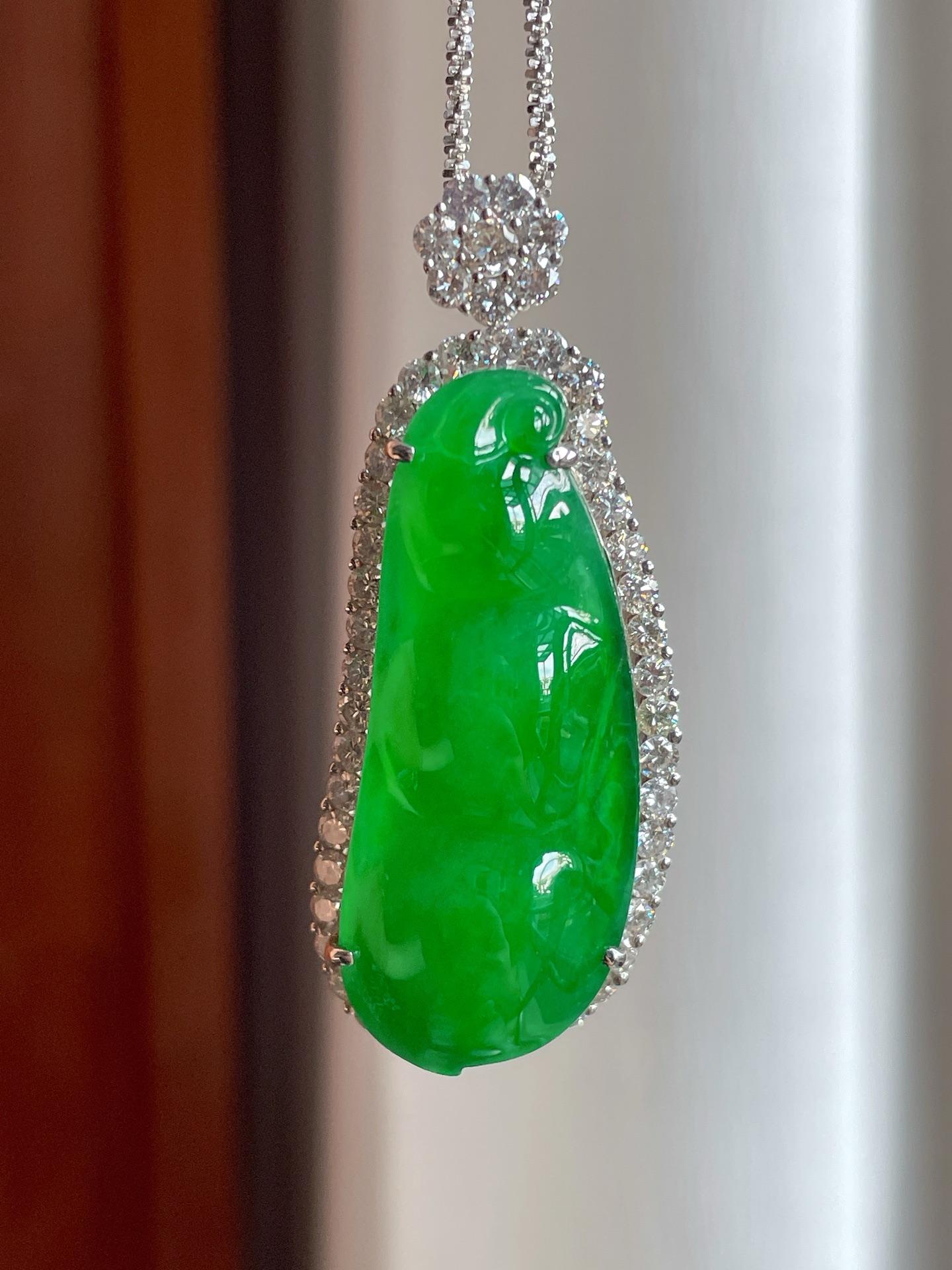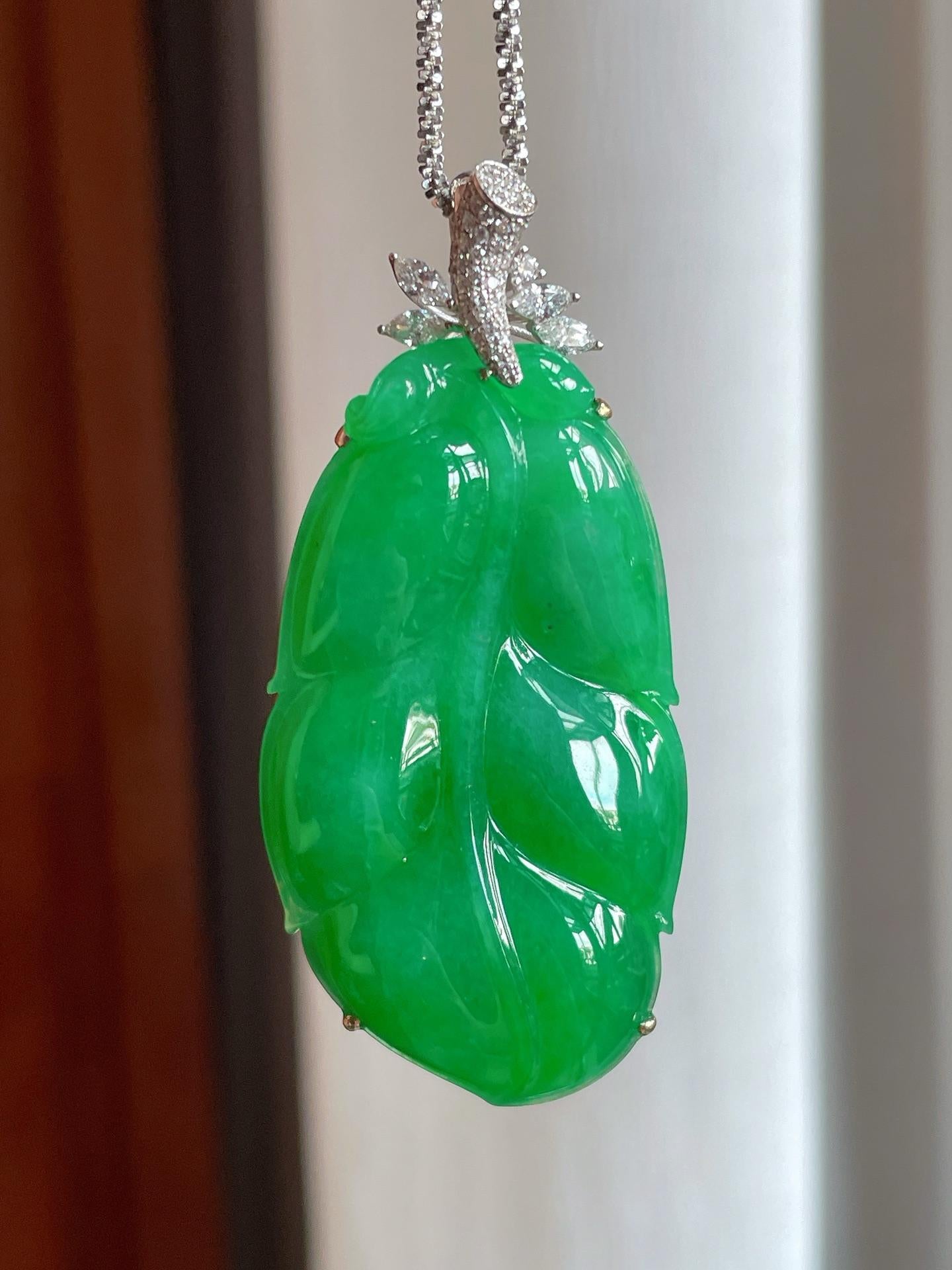 18k金镶冰种满绿翡翠叶子(yc221510) -