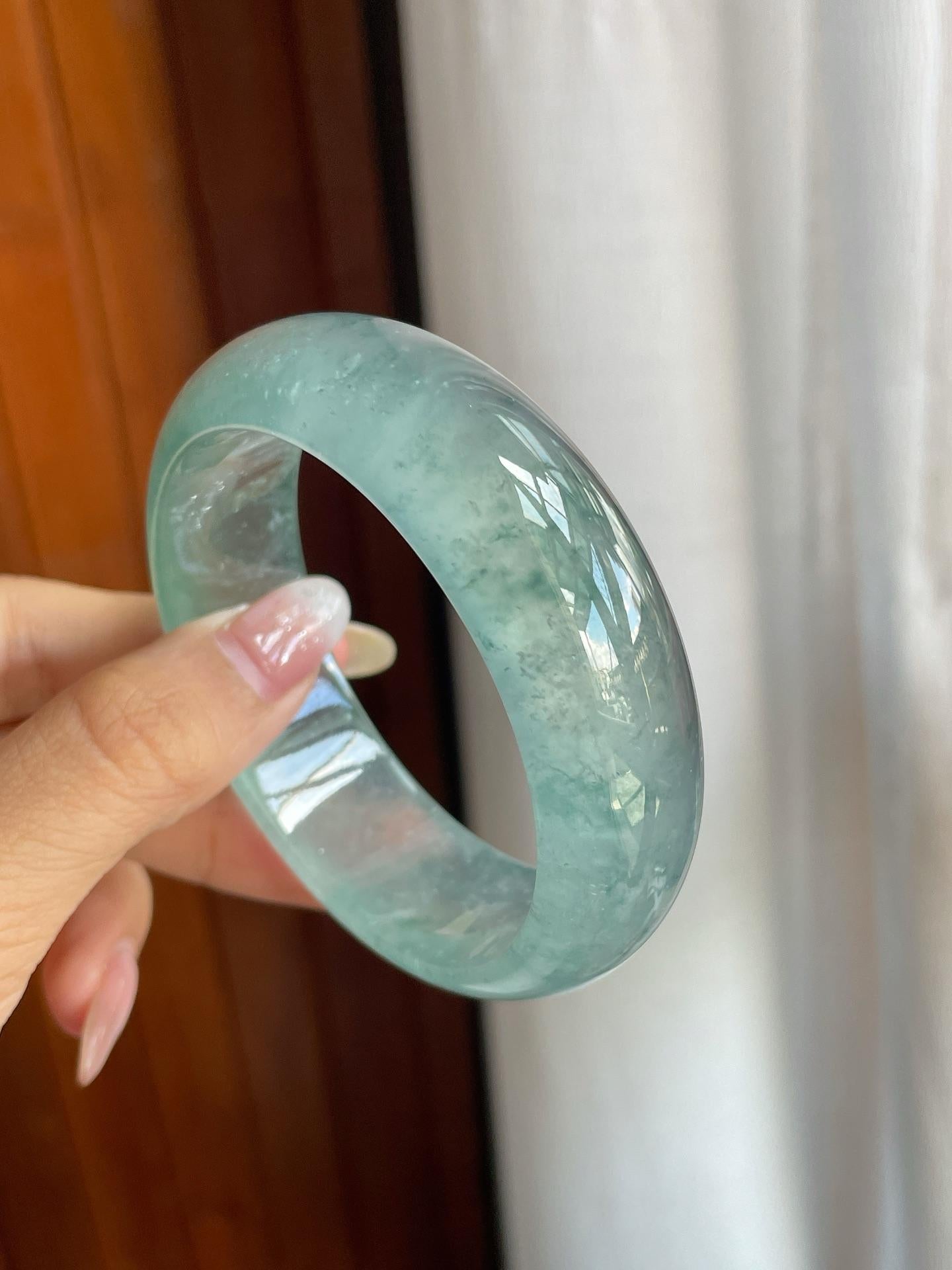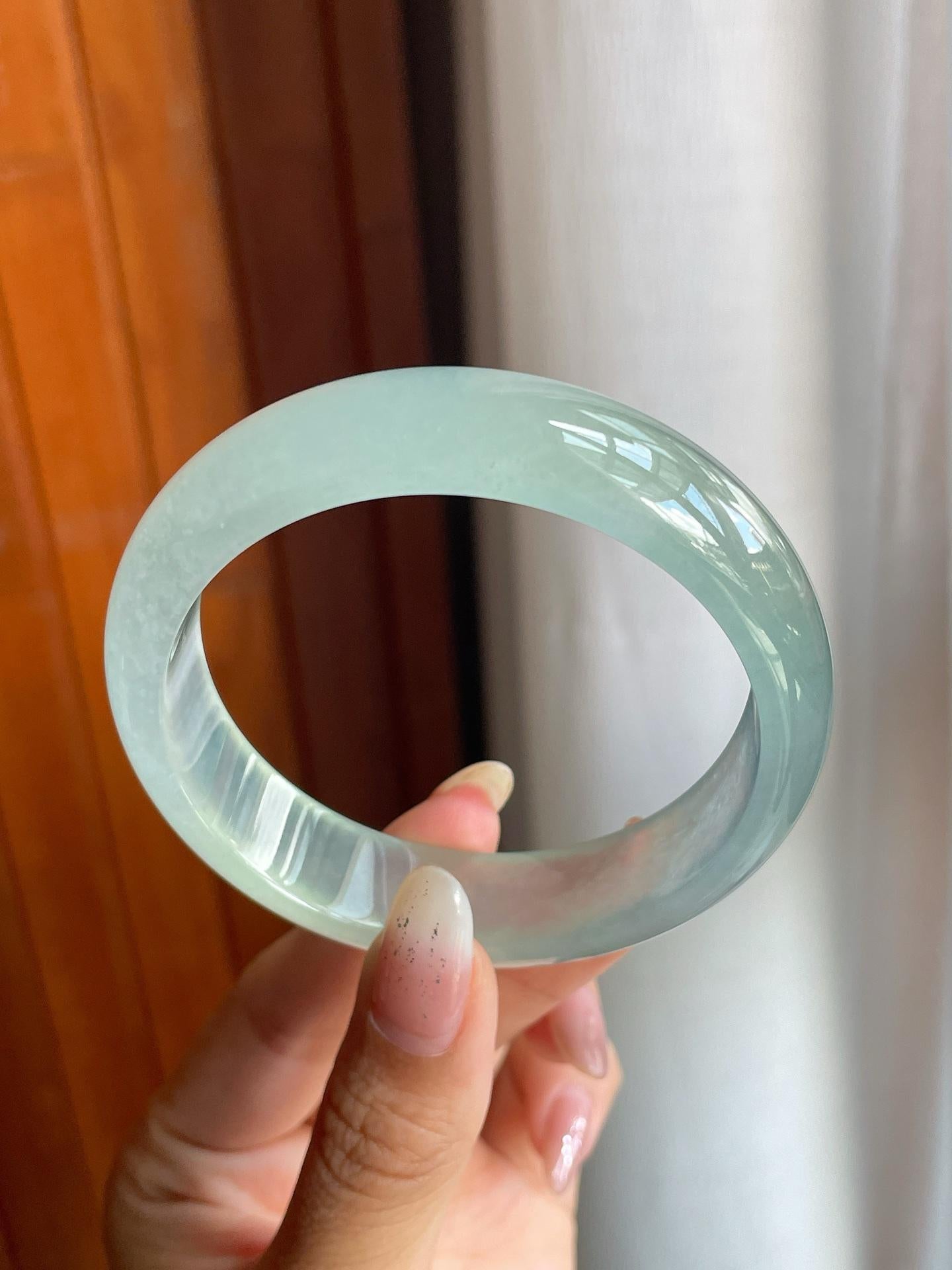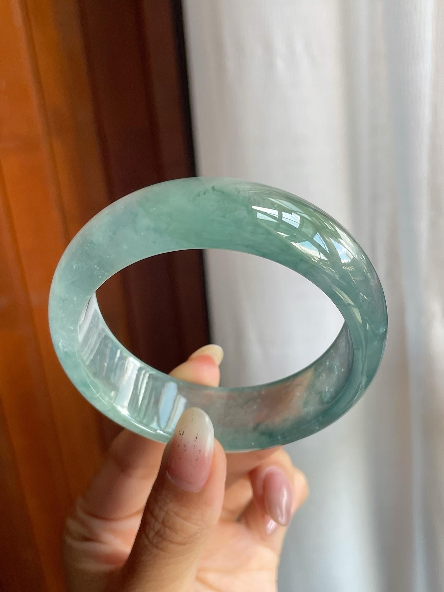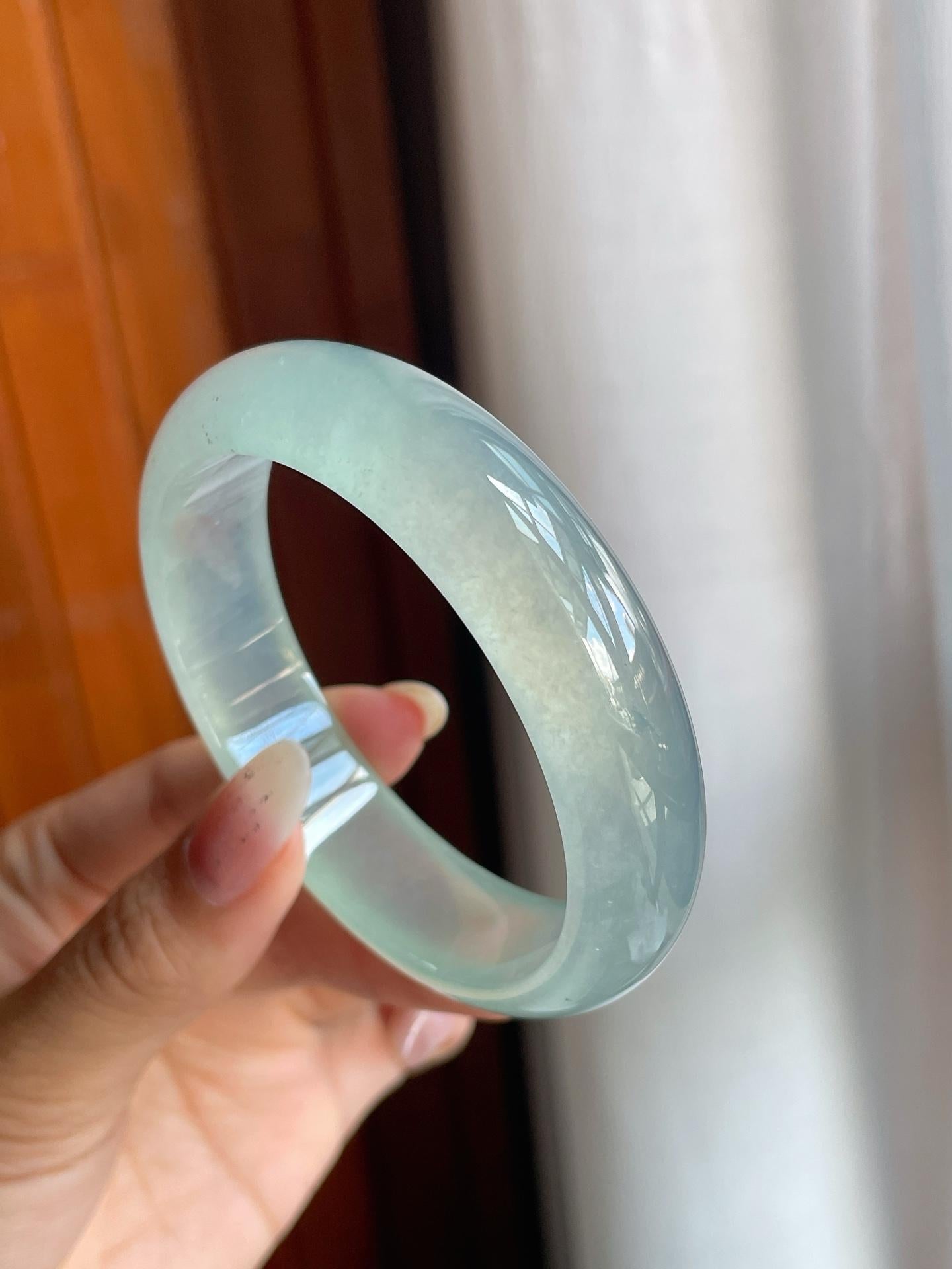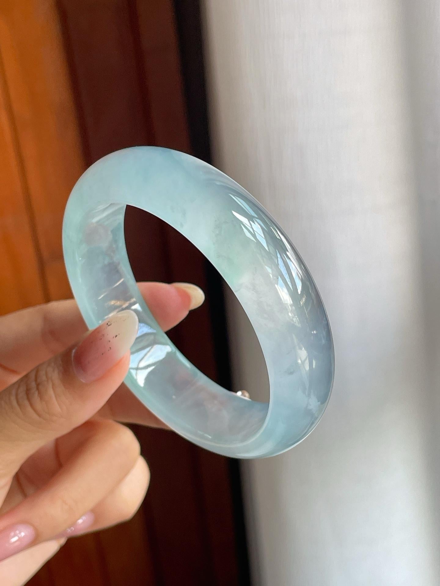 冰玻种蓝底飘花翡翠宽版平安镯(57mm)(yc220806) -