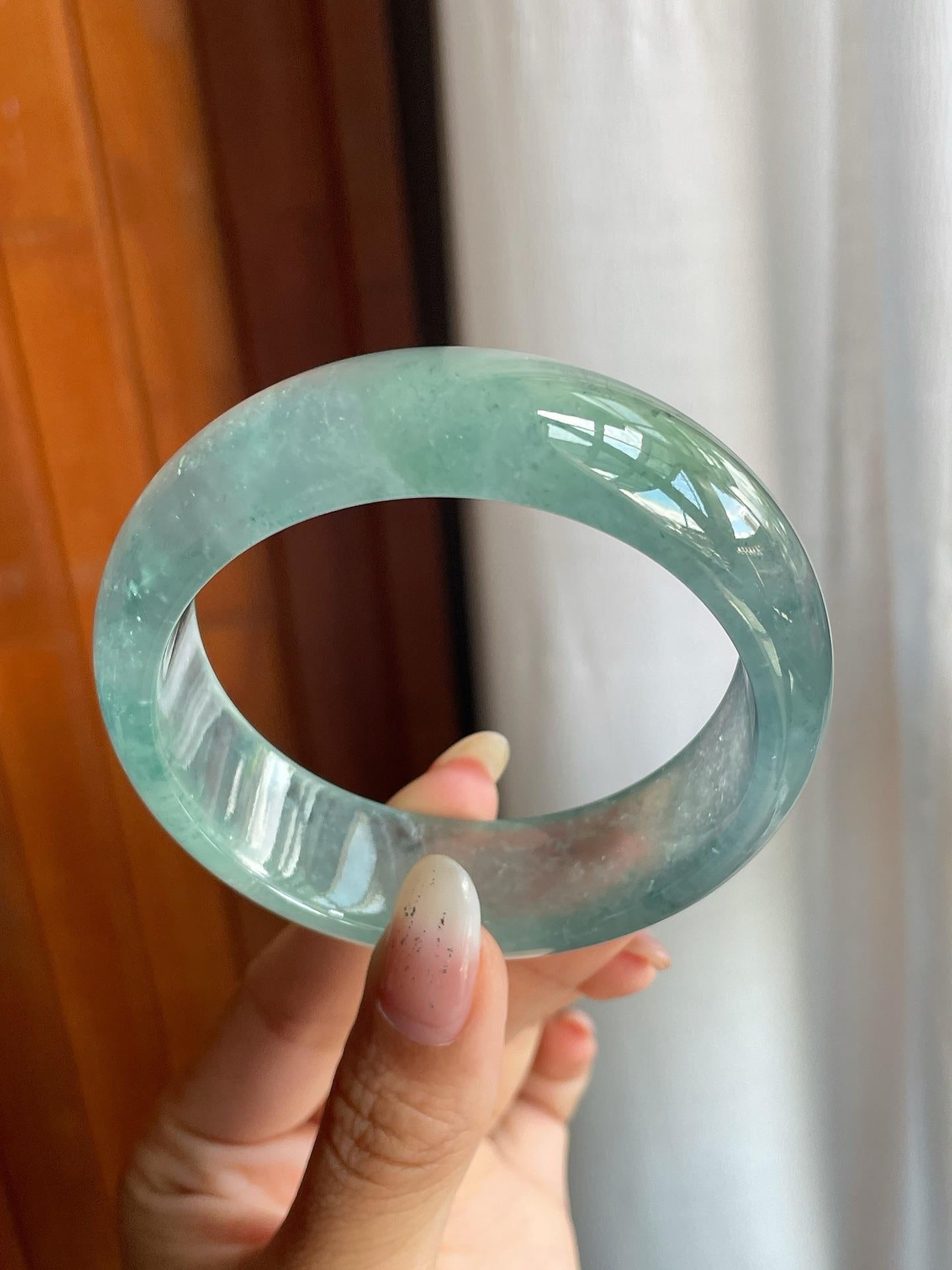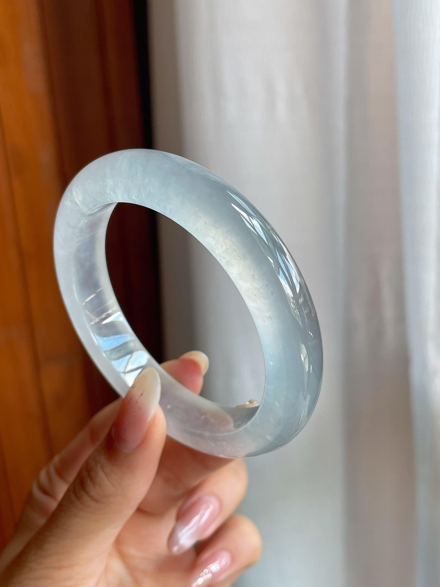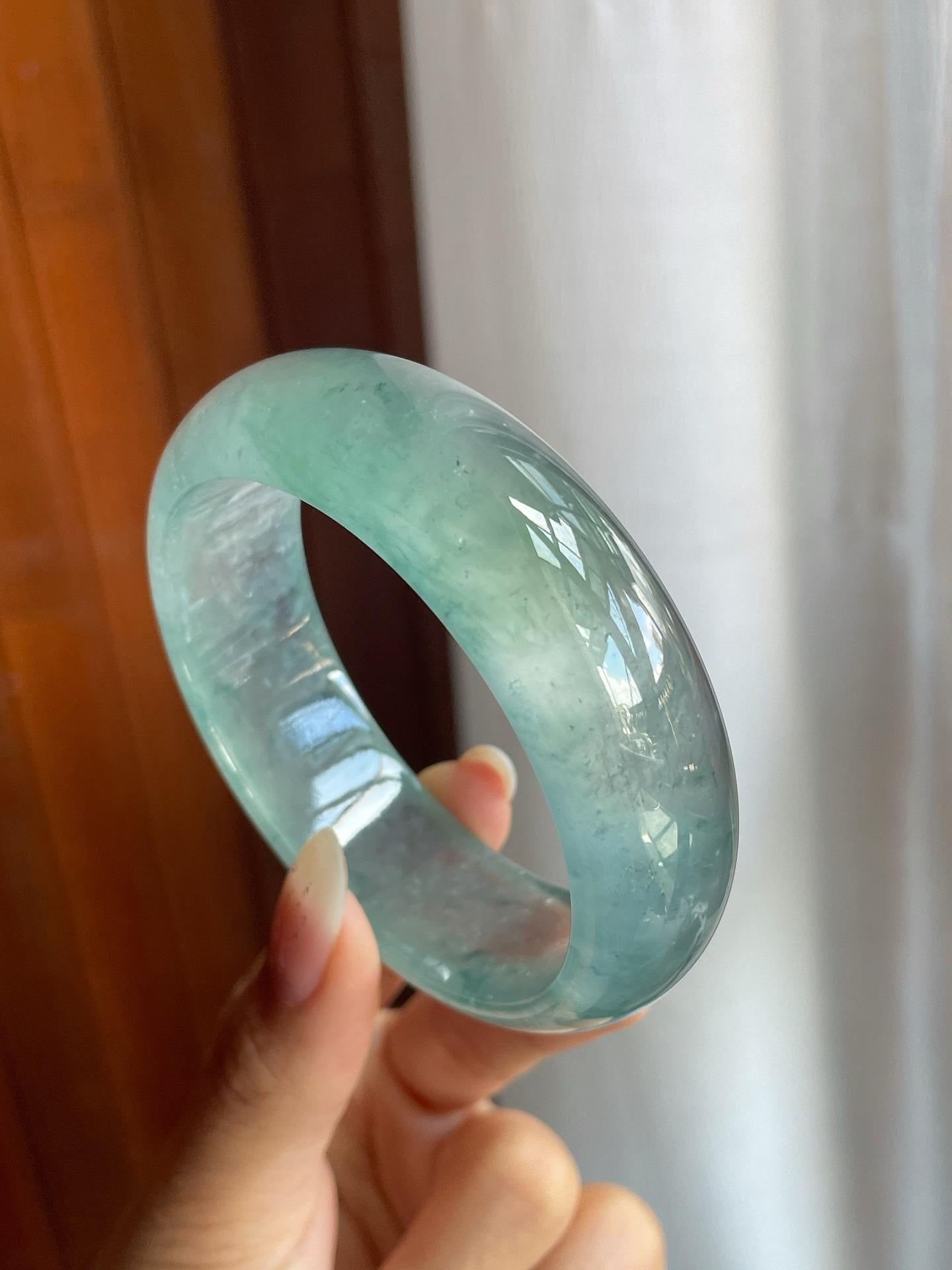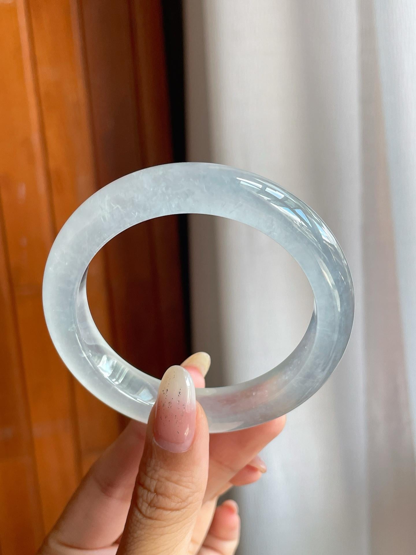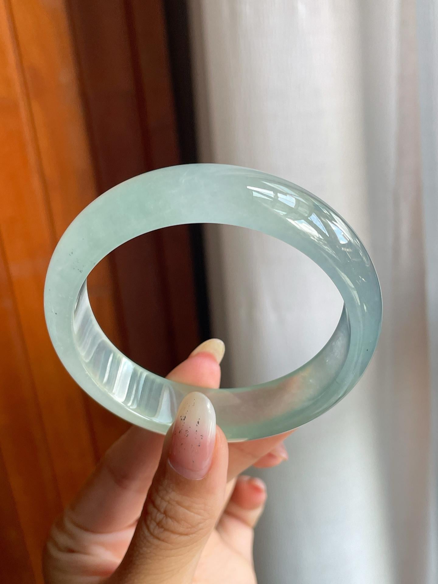冰玻种蓝底飘花翡翠宽版平安镯(57mm)(yc220806) -