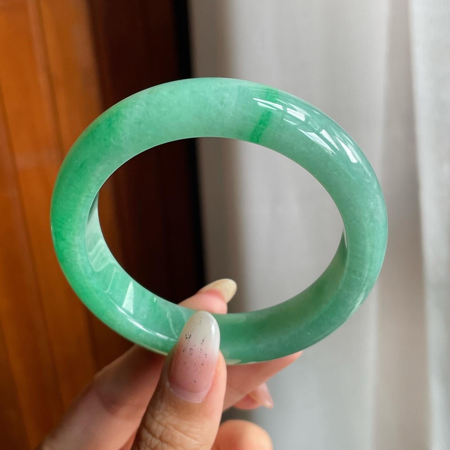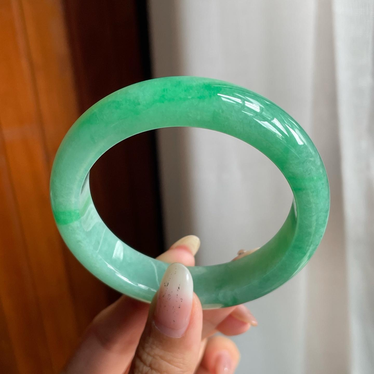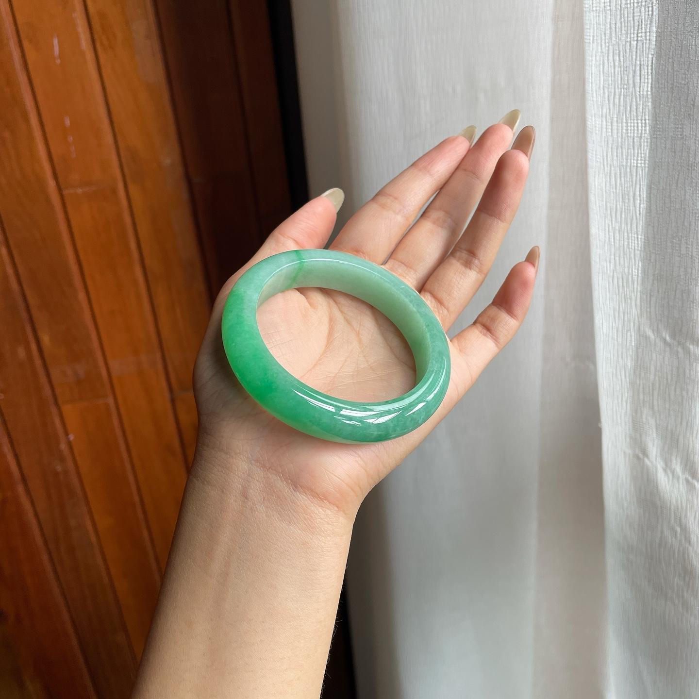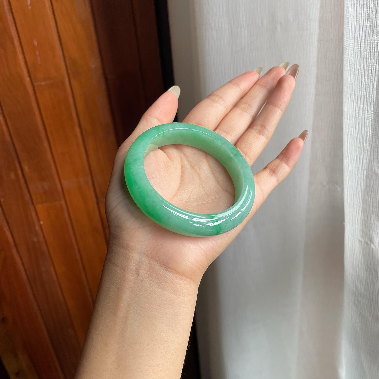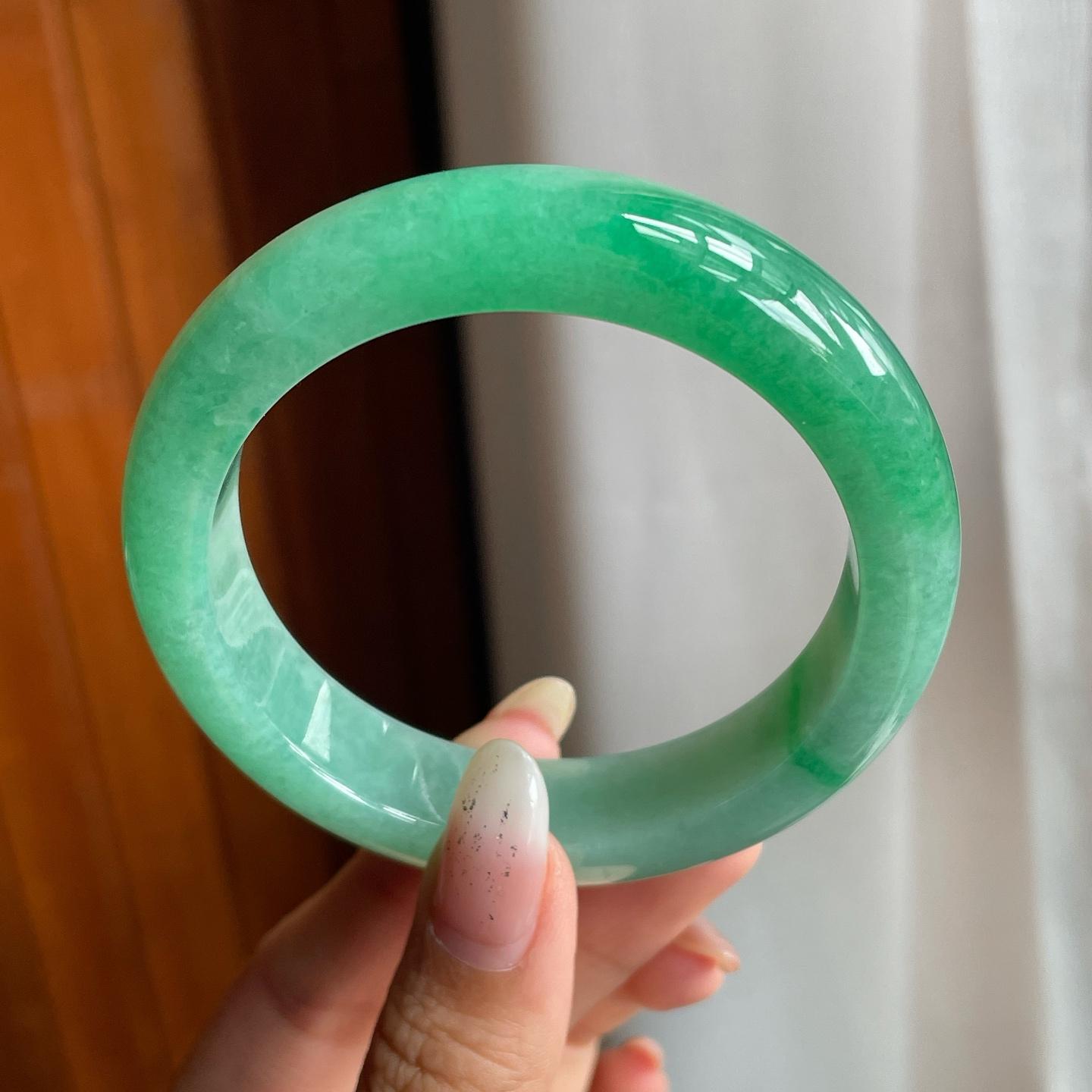 糯冰满绿翡翠圆条手镯(53.5mm)(yc221857) -