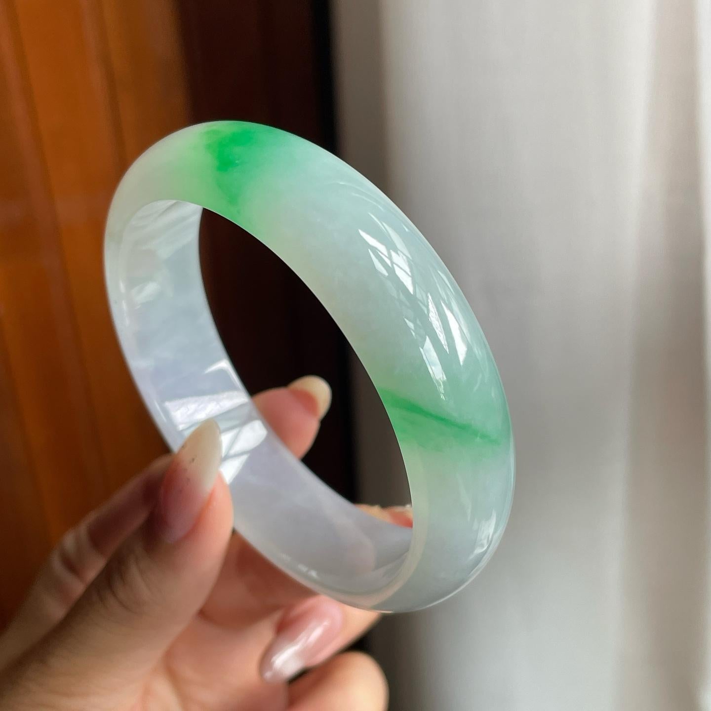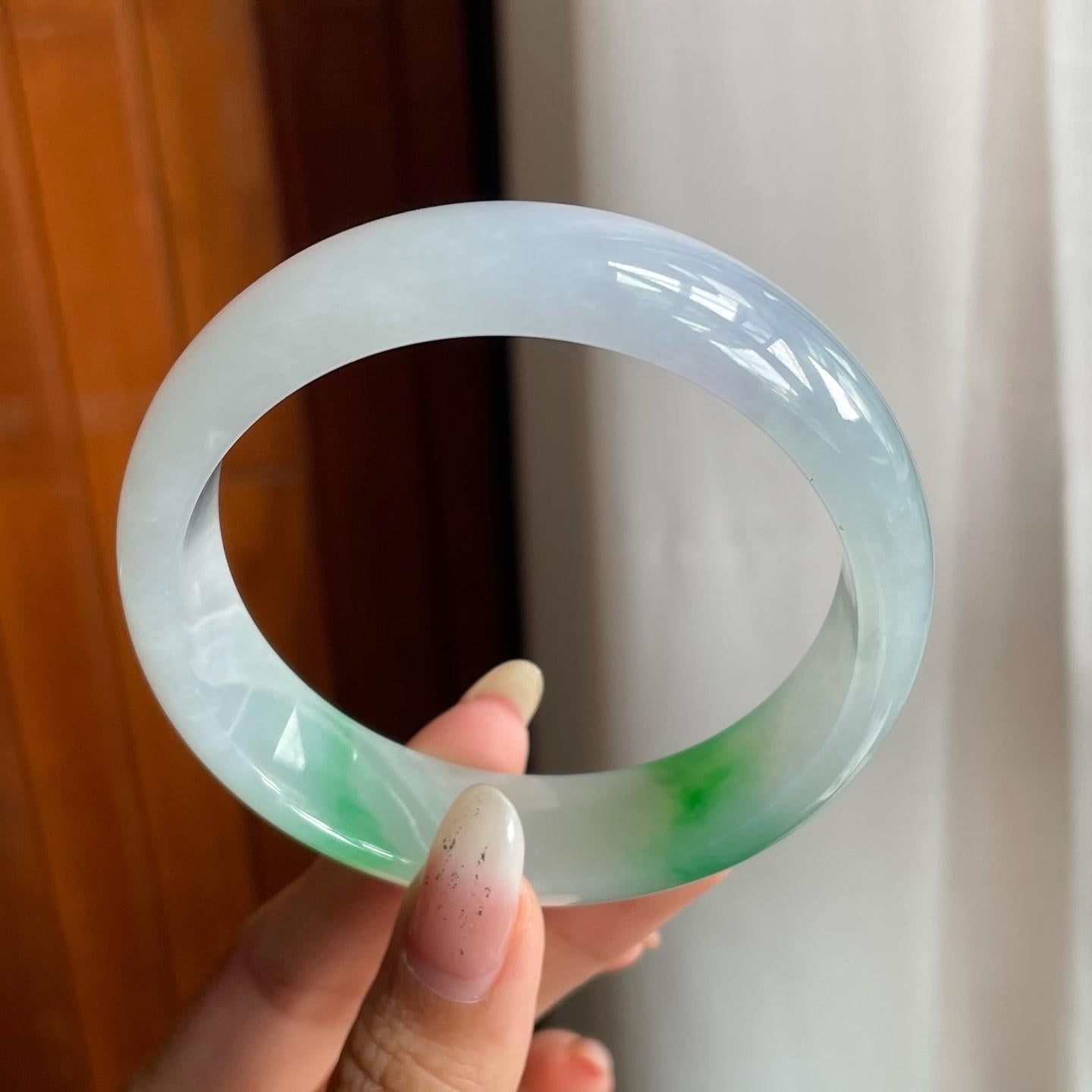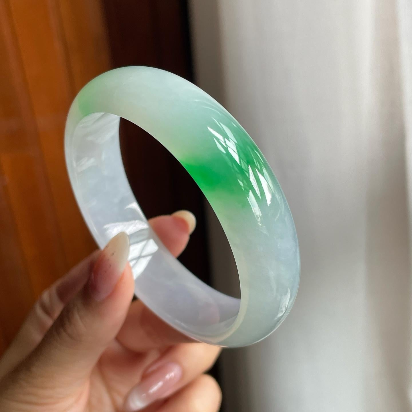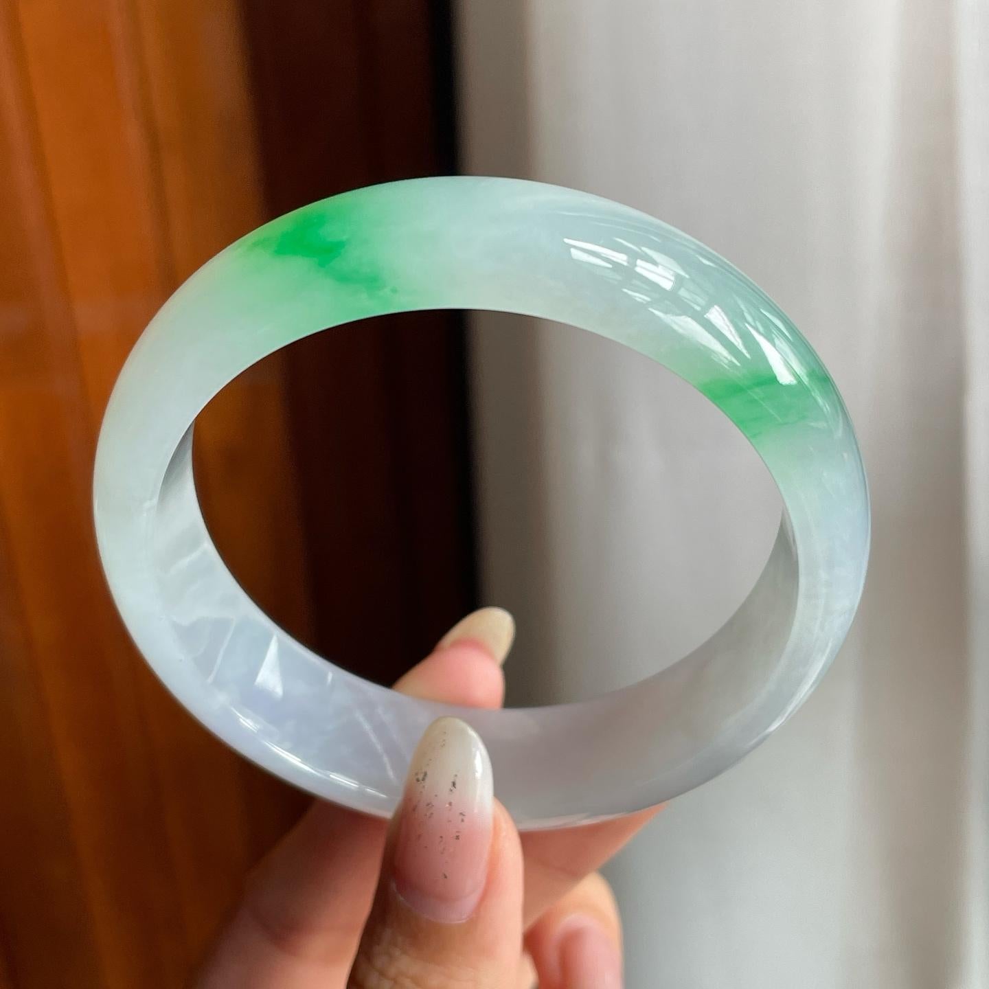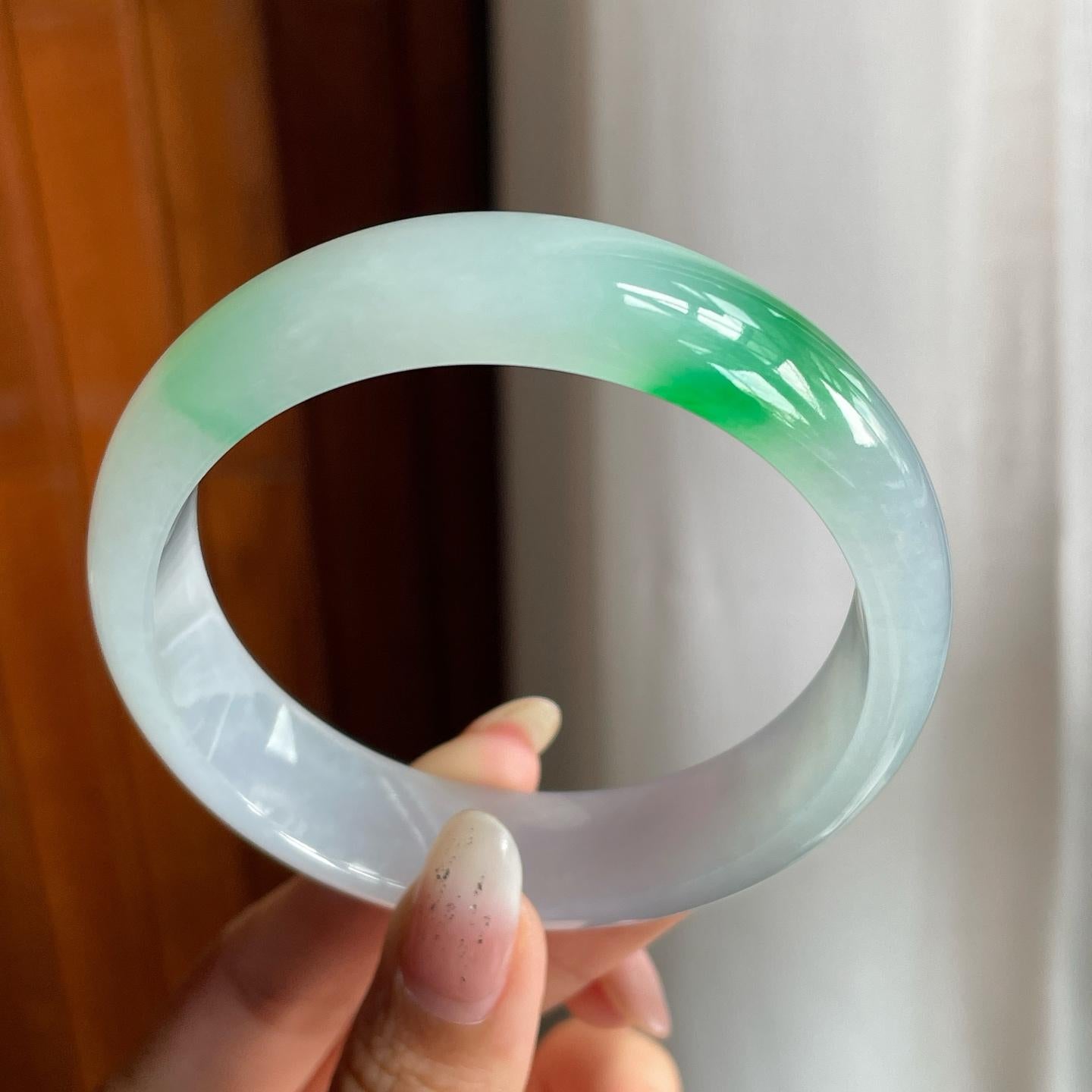 冰种带色翡翠平安镯(60mm)(yc221884) -