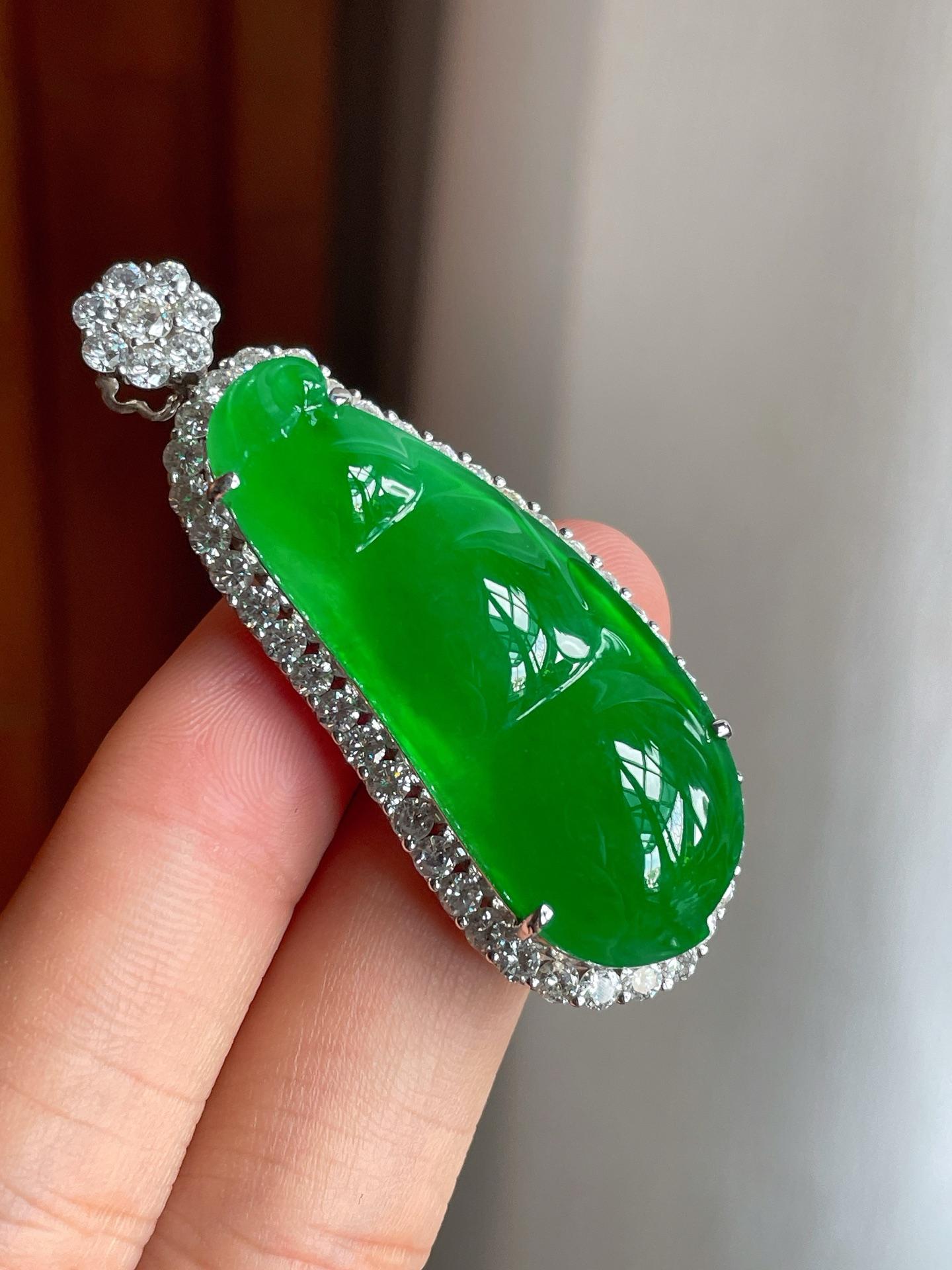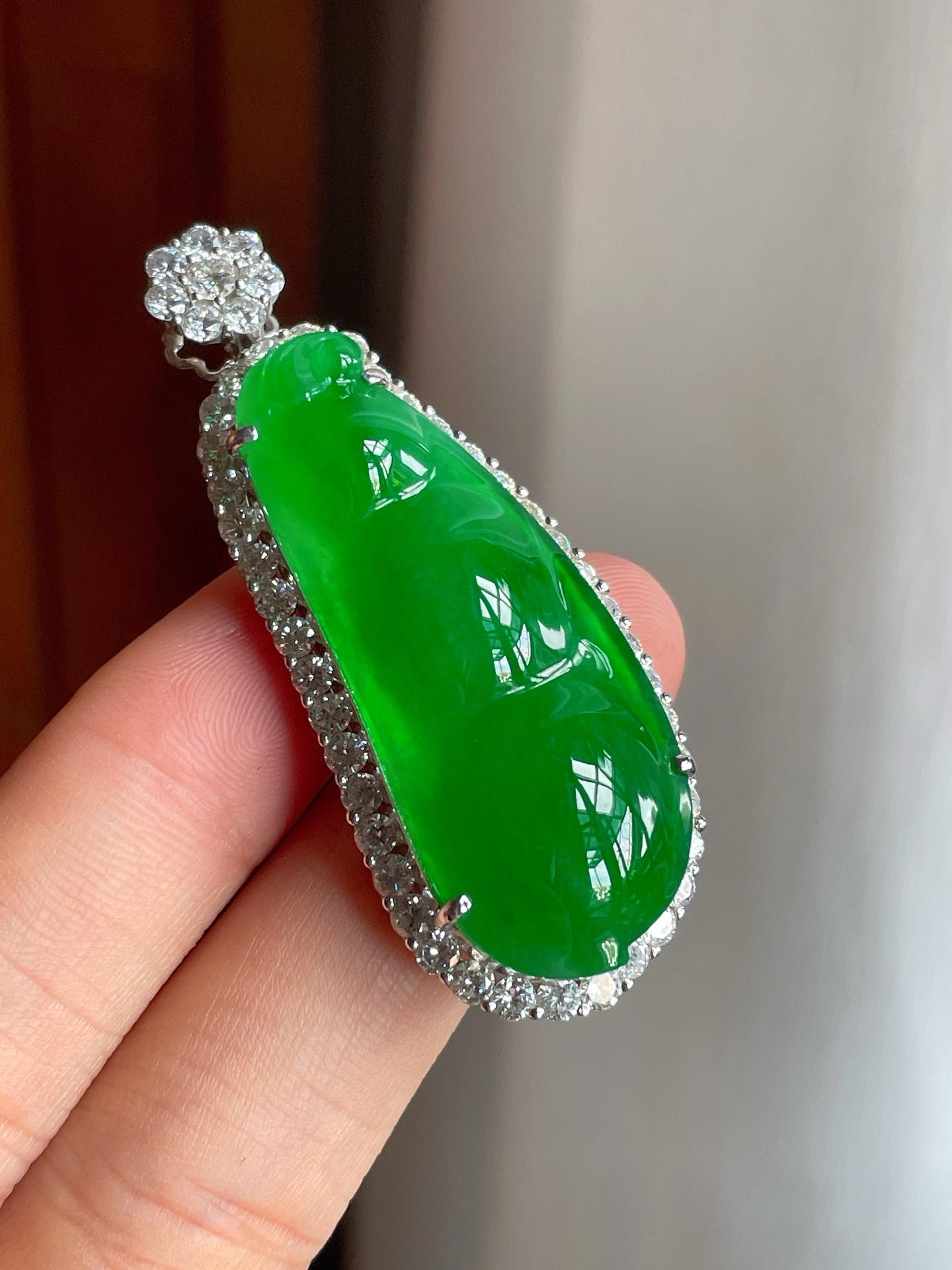 18k金钻镶冰种满绿翡翠豆子(yc221508) -