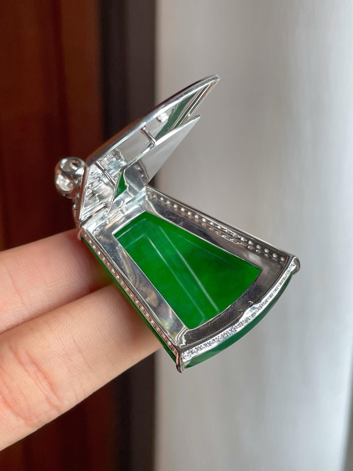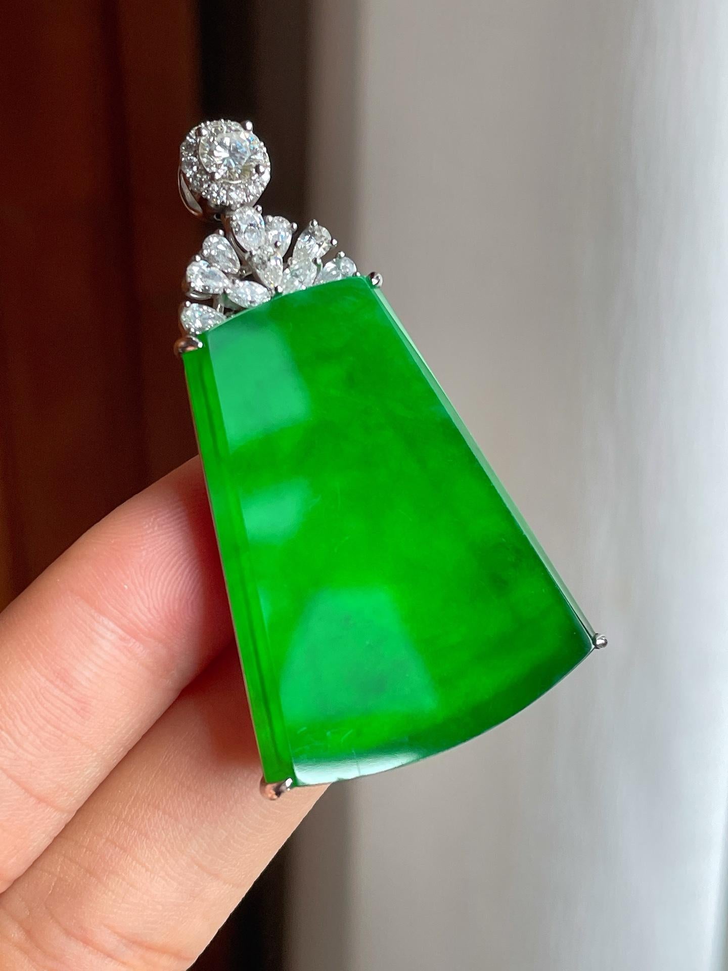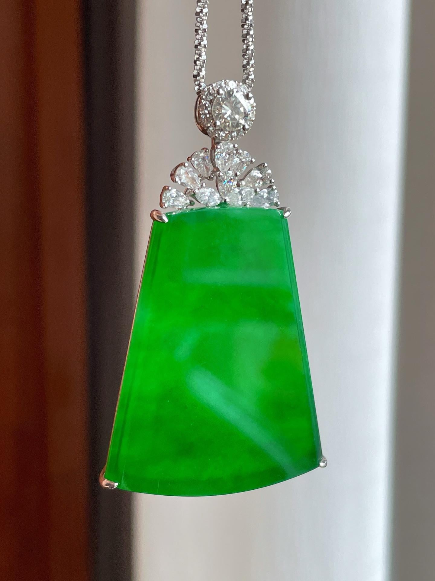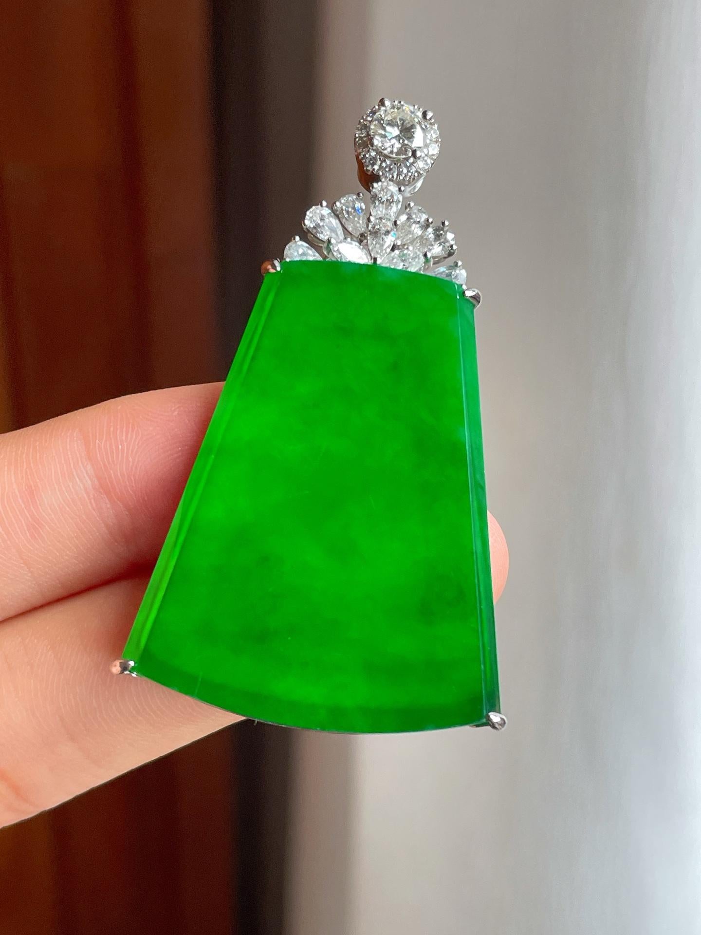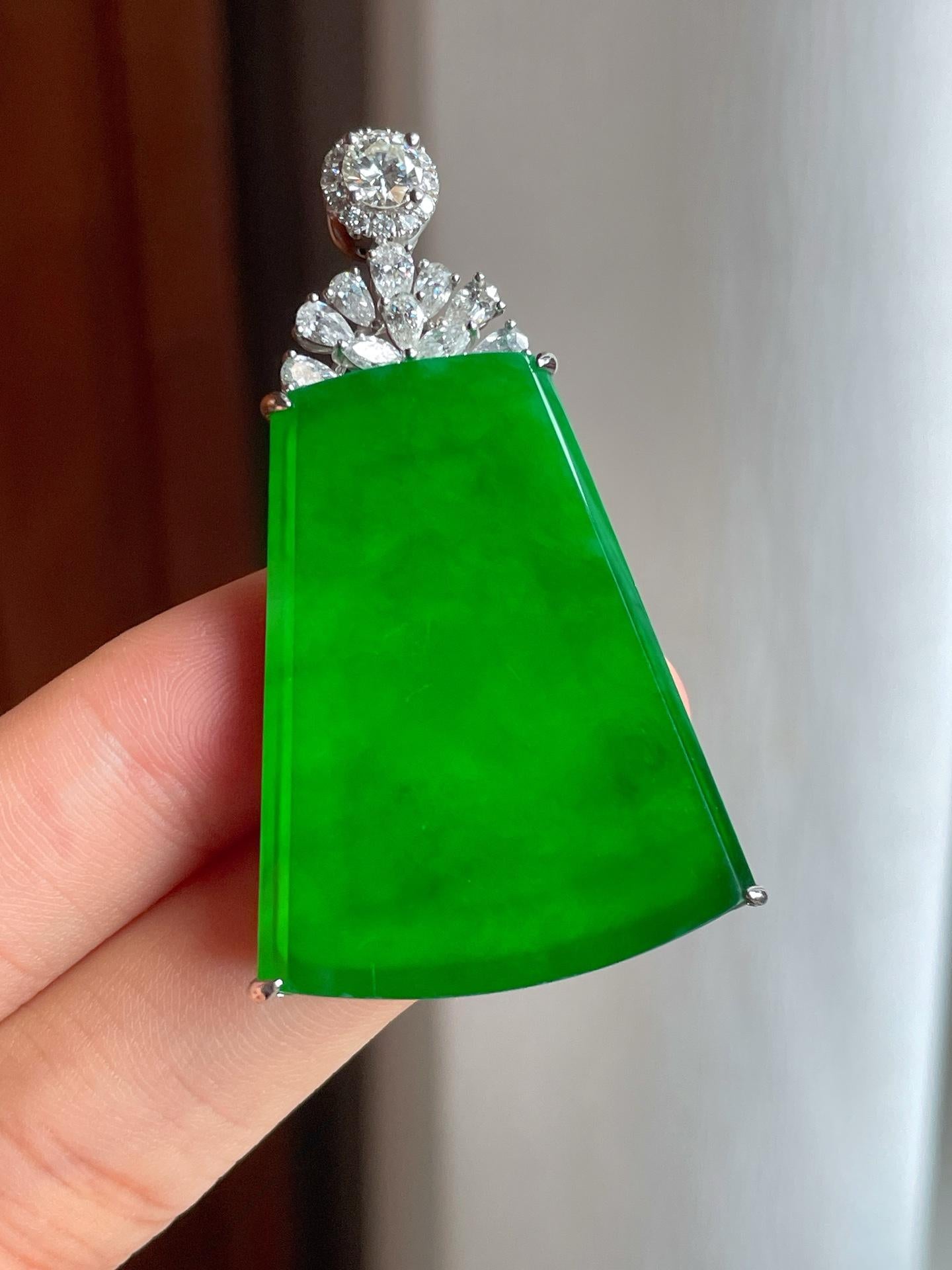 18k金镶冰种满绿翡翠无事牌(yc221509) -
