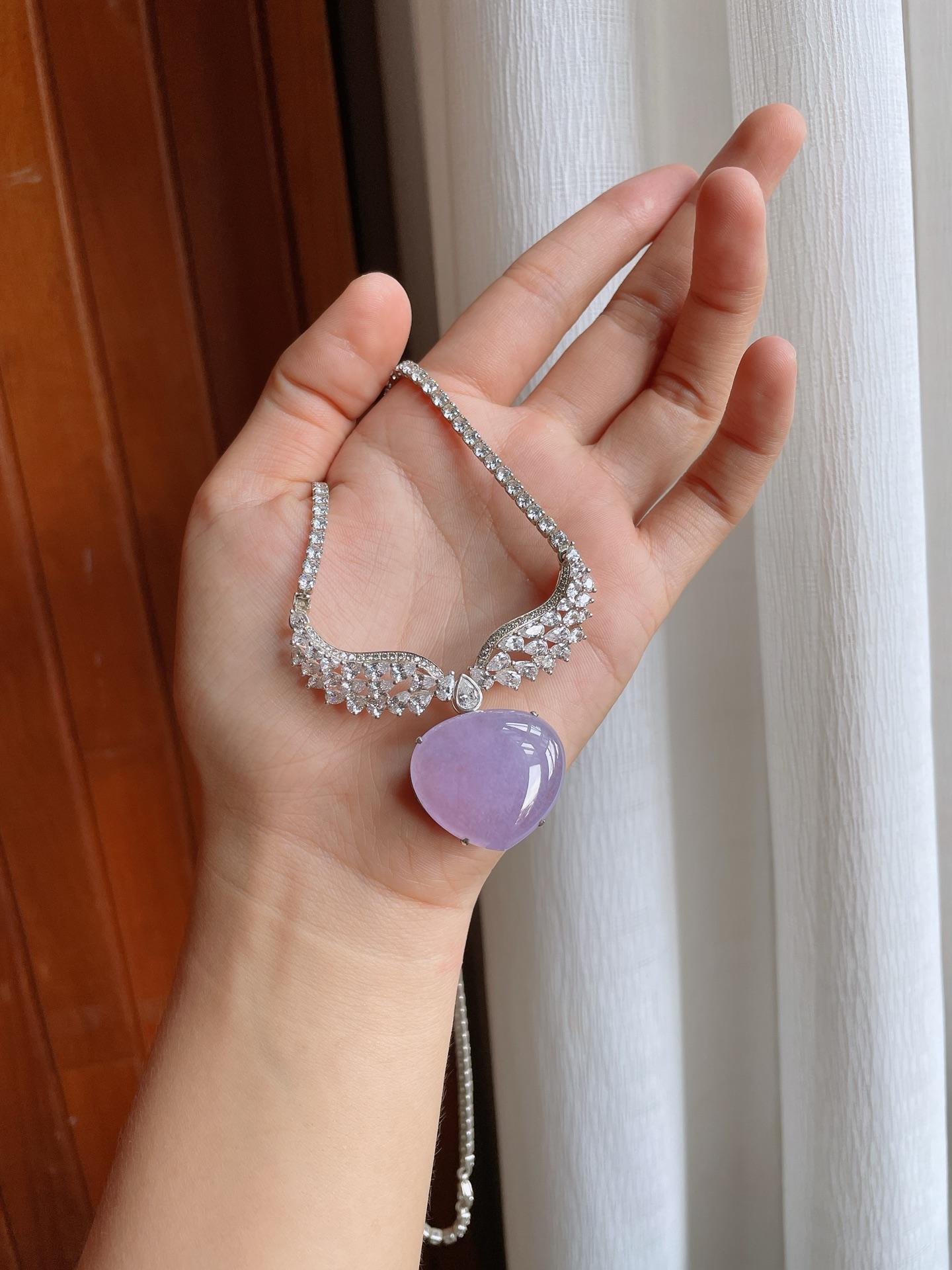 铜托冰种紫罗兰翡翠蛋面(yc221507) -