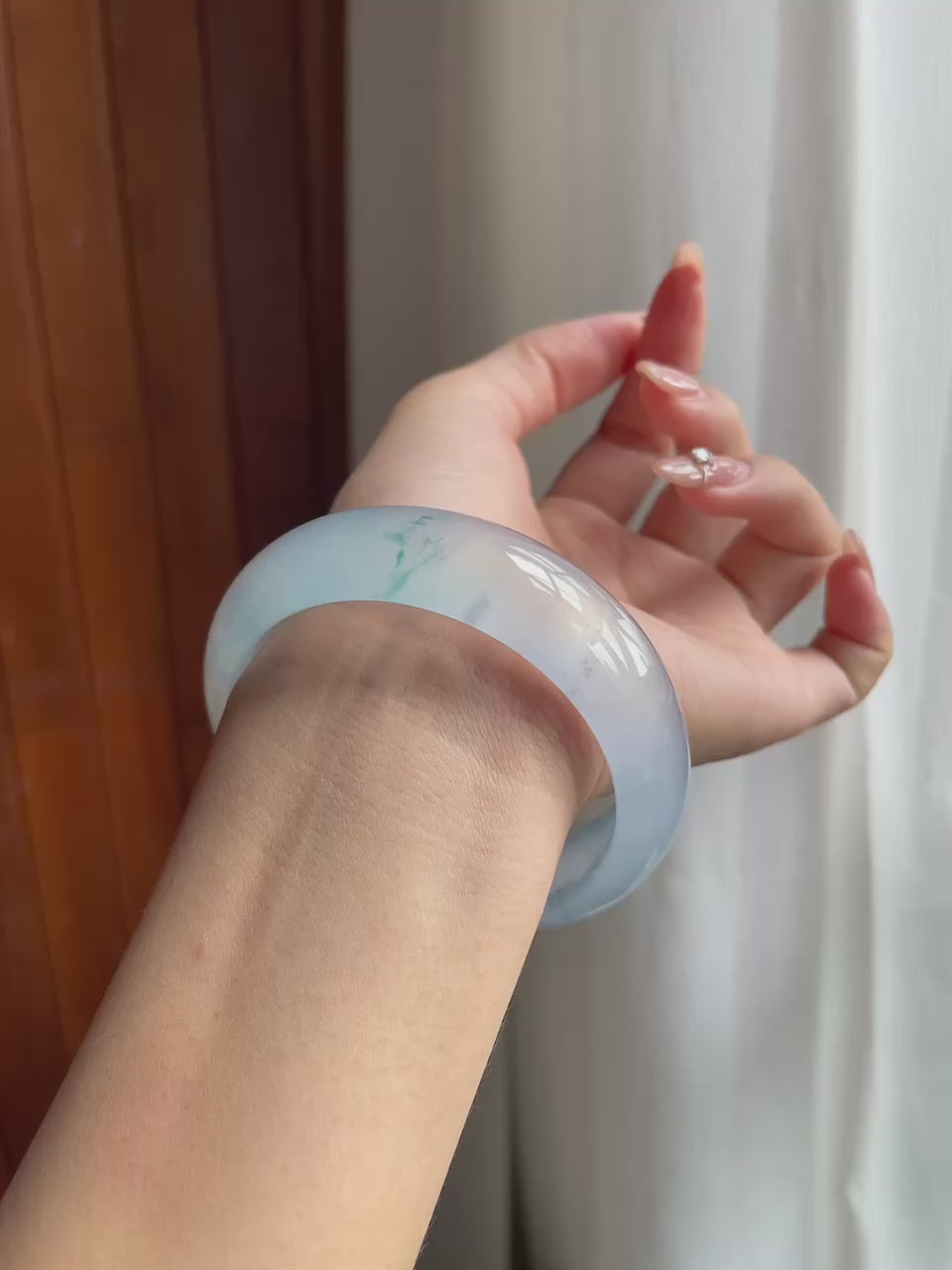 冰玻种飘花翡翠宽版平安镯(59mm)(yc196578)
