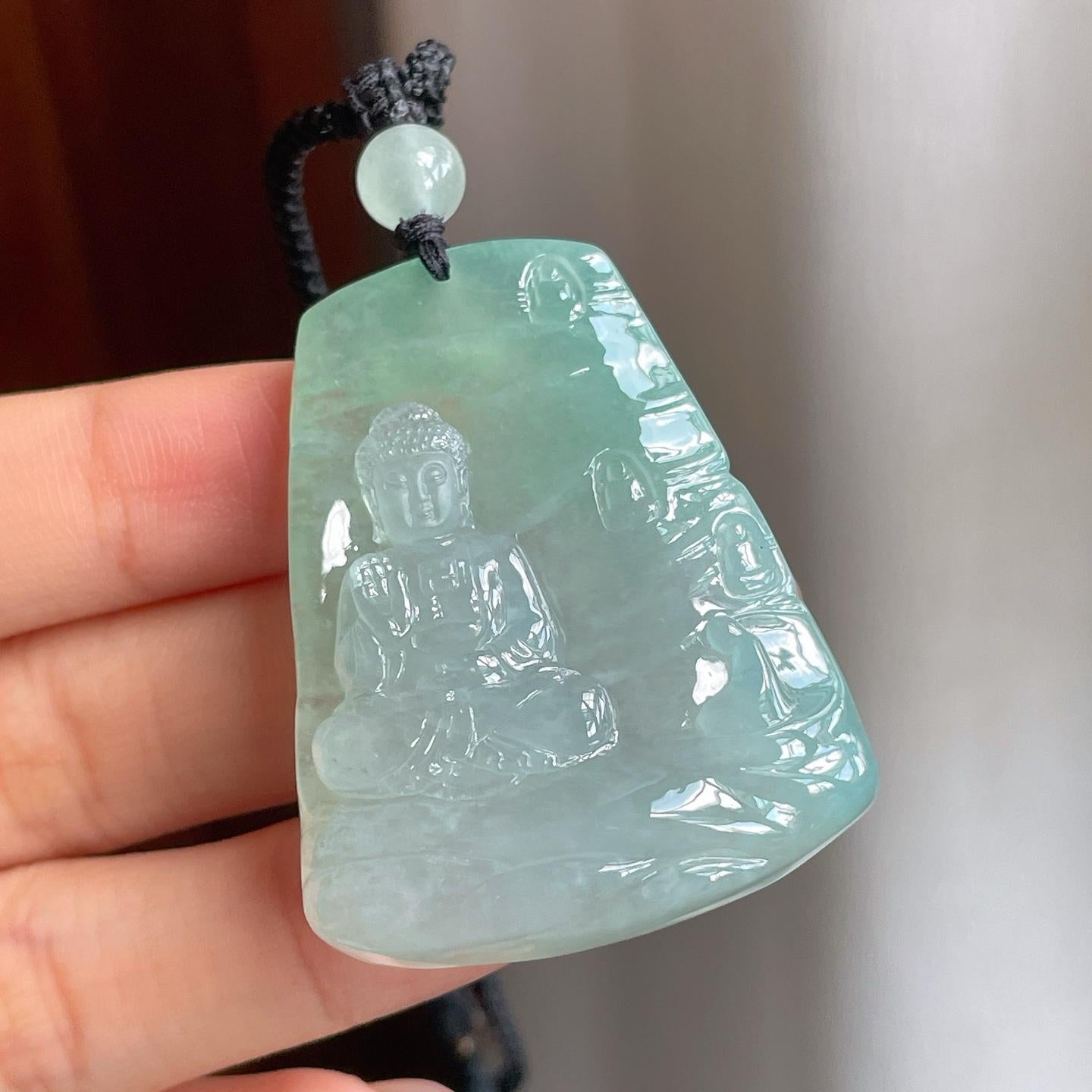 冰种晴底翡翠阿弥陀佛挂件(yc187618)