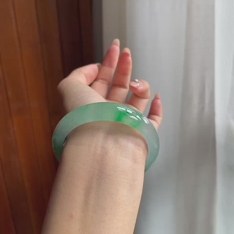 冰种飘绿花翡翠平安镯(54mm)(yc196580)
