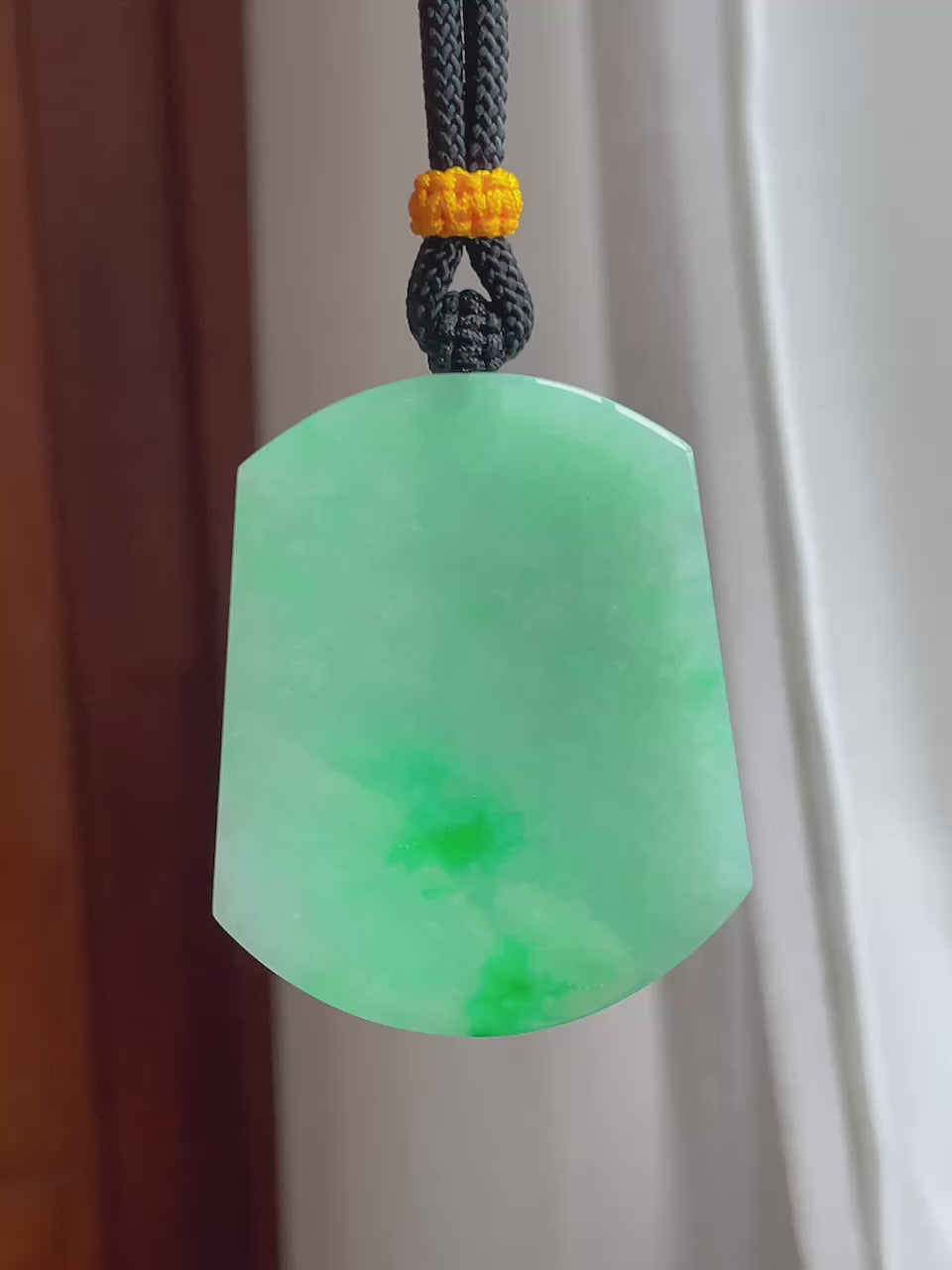 糯冰种豆绿飘阳绿翡翠无事牌挂件(yc186514)