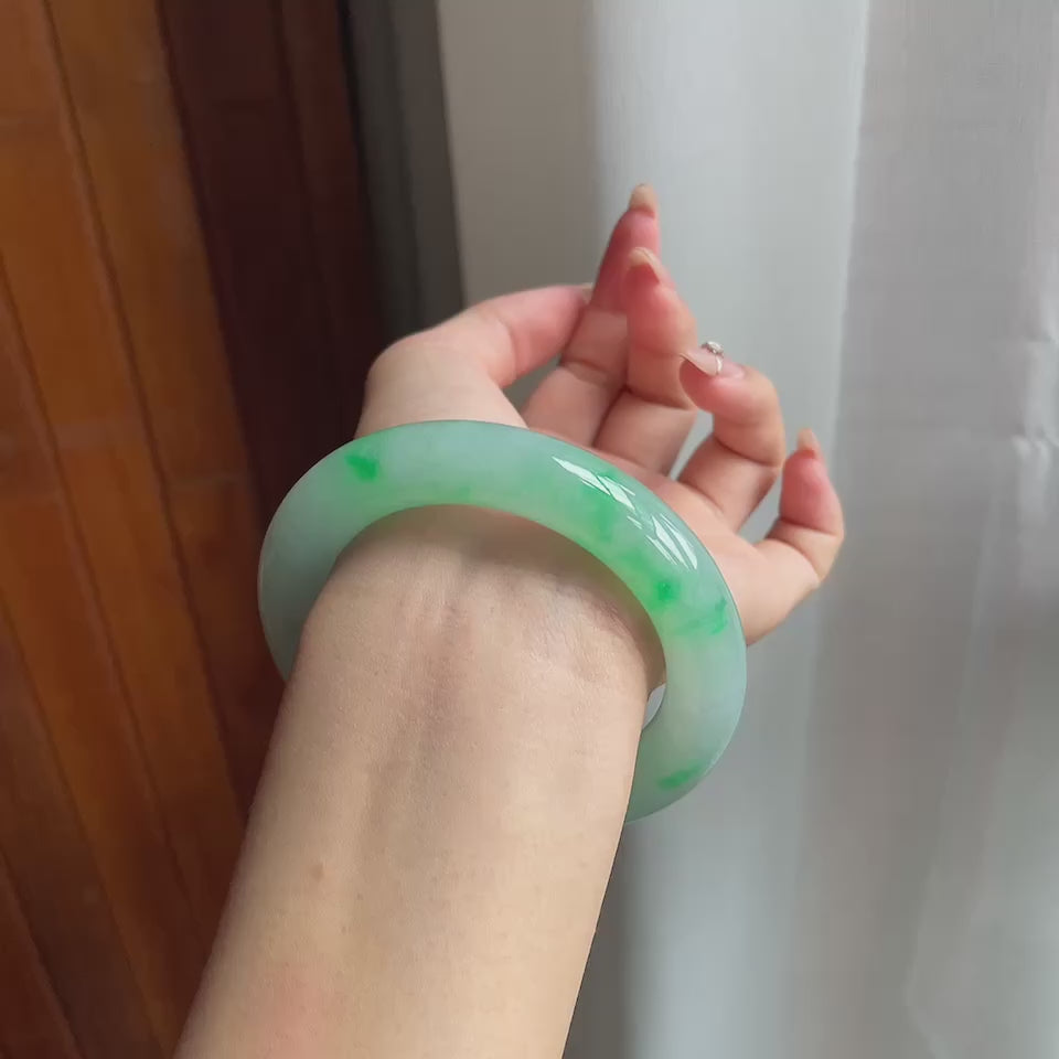 糯冰种飘绿花翡翠胖圆条手镯(56mm)(yc196575)