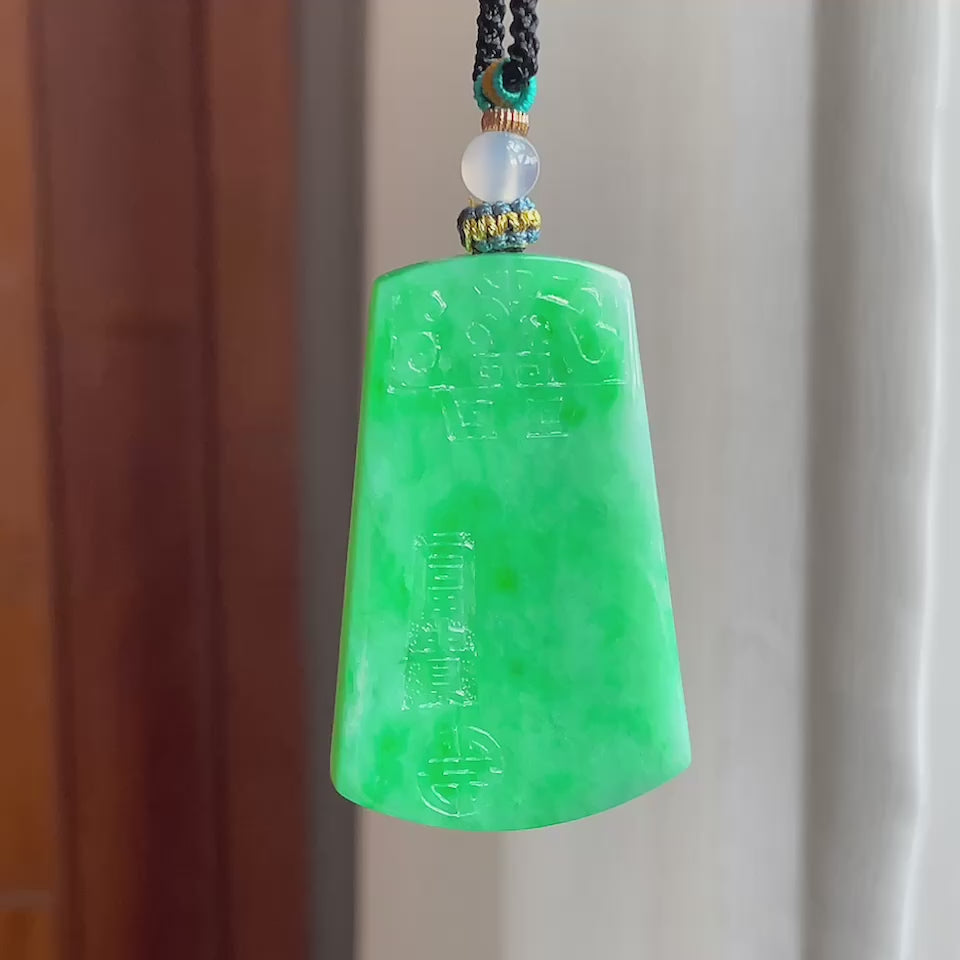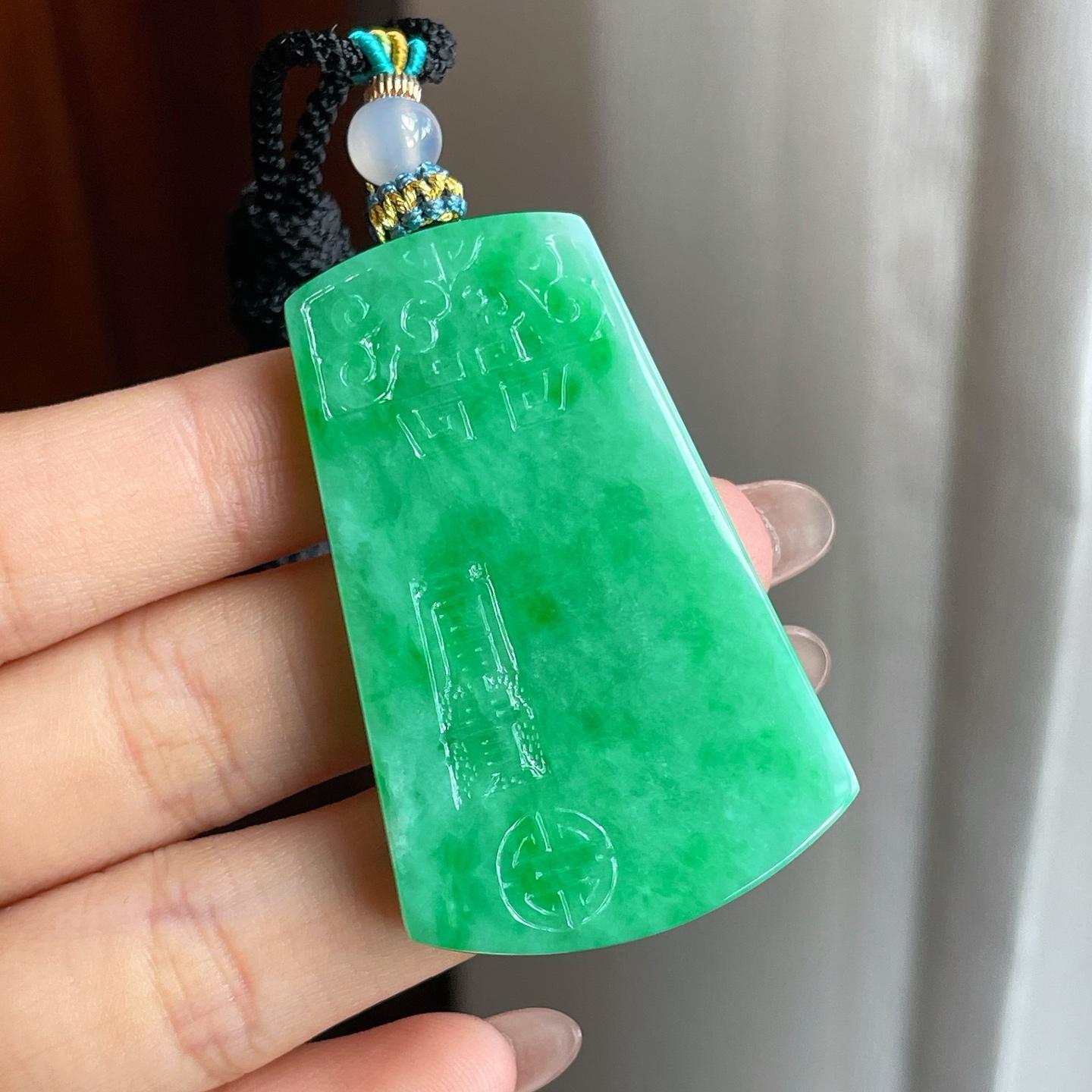 糯冰种飘阳绿翡翠无事牌挂件(yc187622)