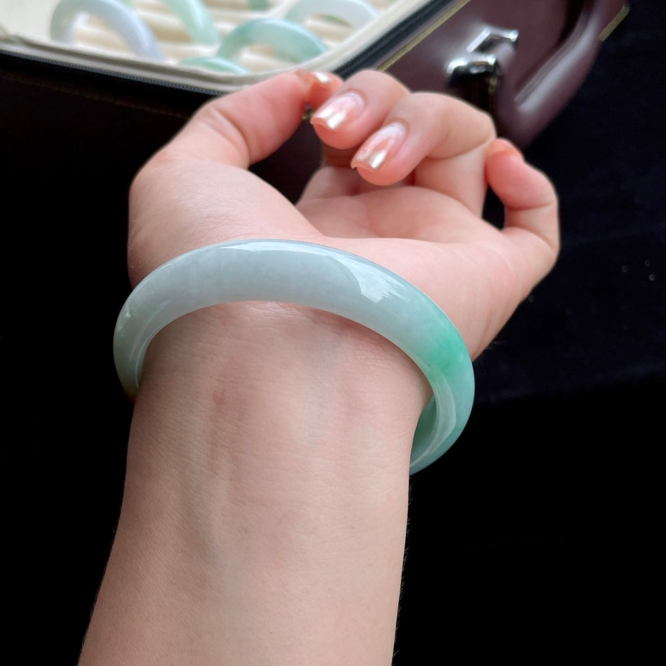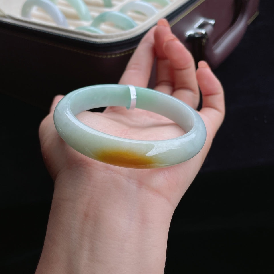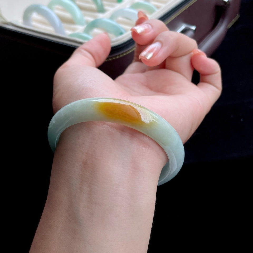 细糯种黄加绿翡翠手镯(58.7mm)(yc016515)