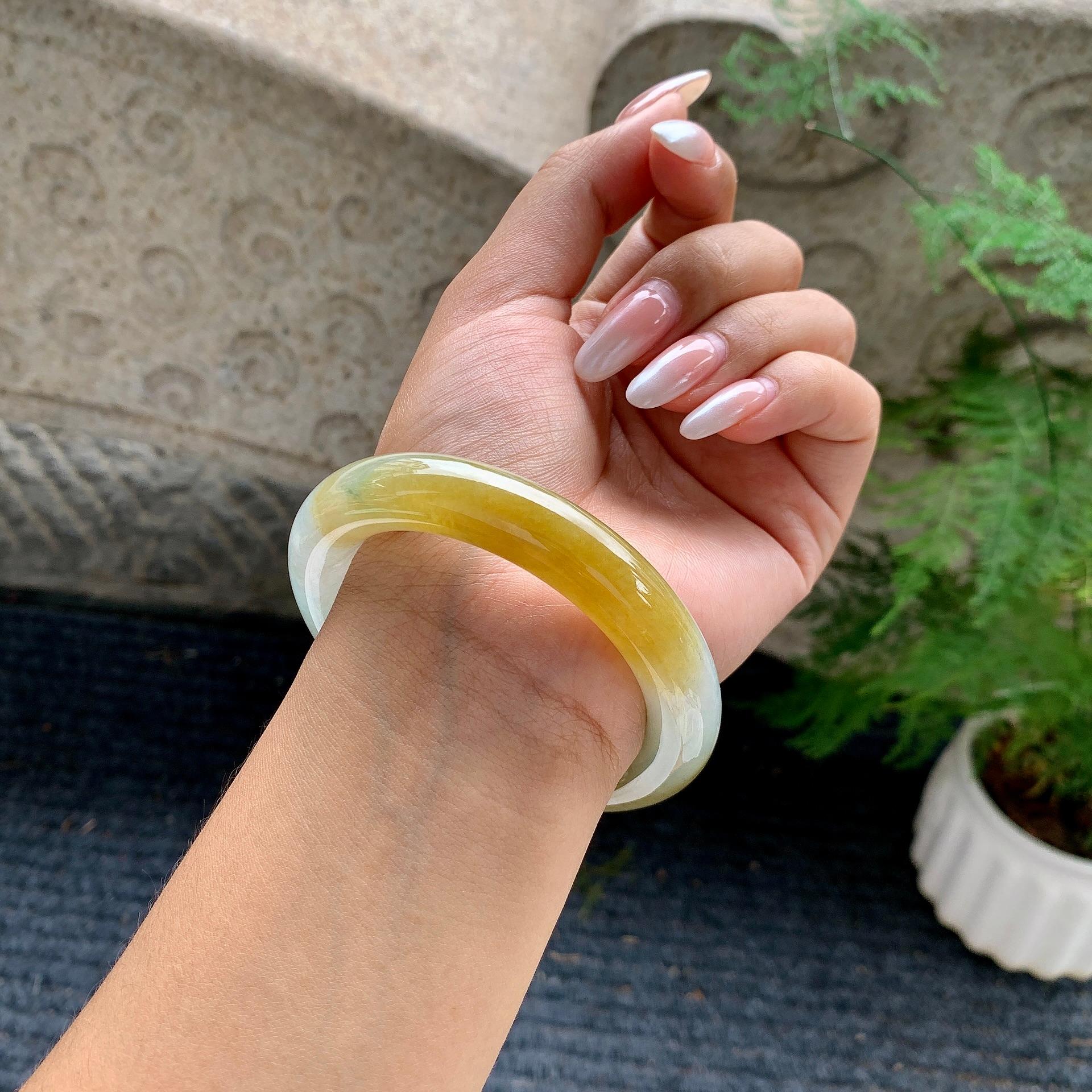 细糯种黄翡圆条手镯(55.1mm)(yc196542)