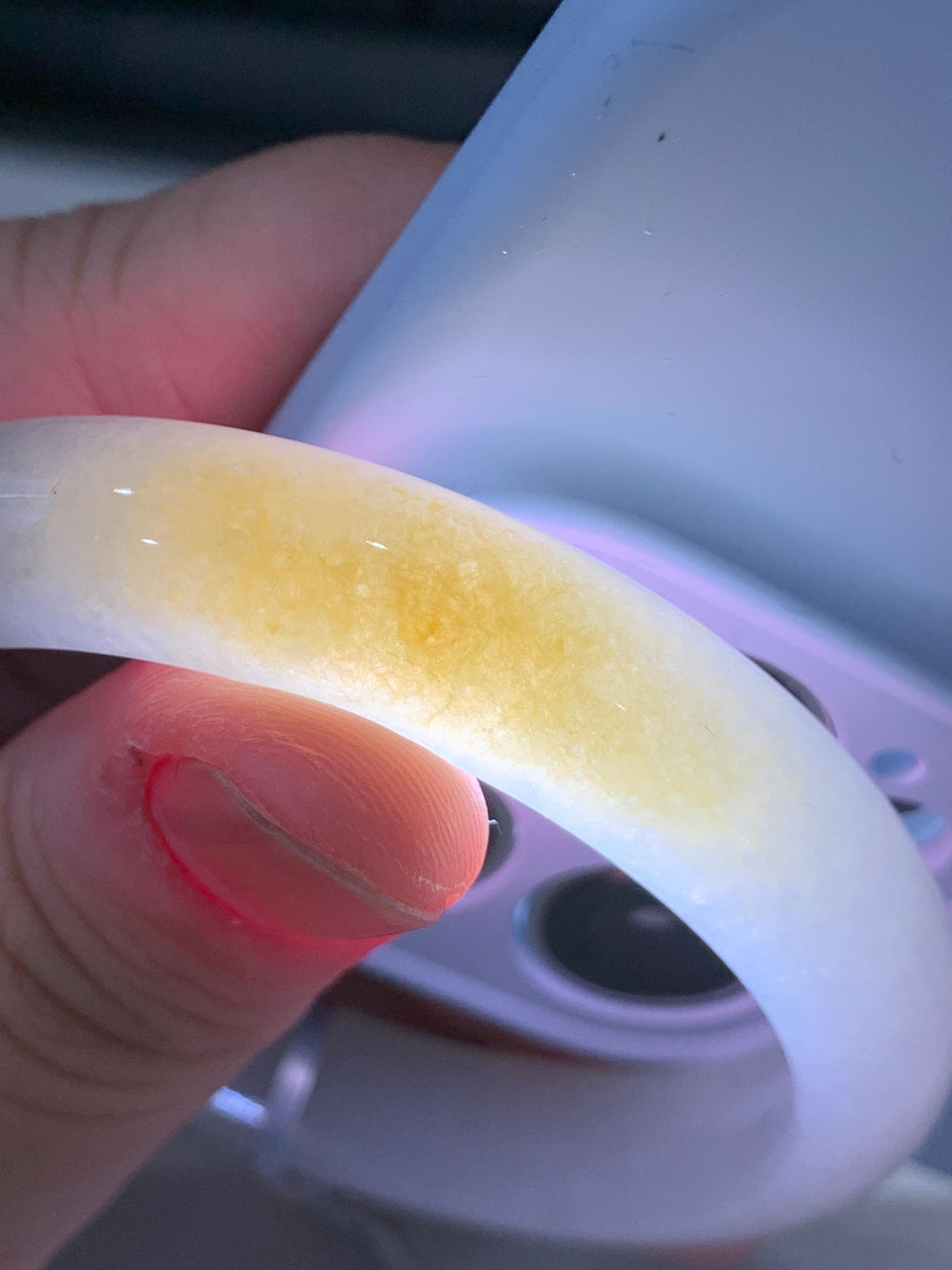 强光下可见细微色根,但瑕不掩瑜,不影响价值与佩戴美观。