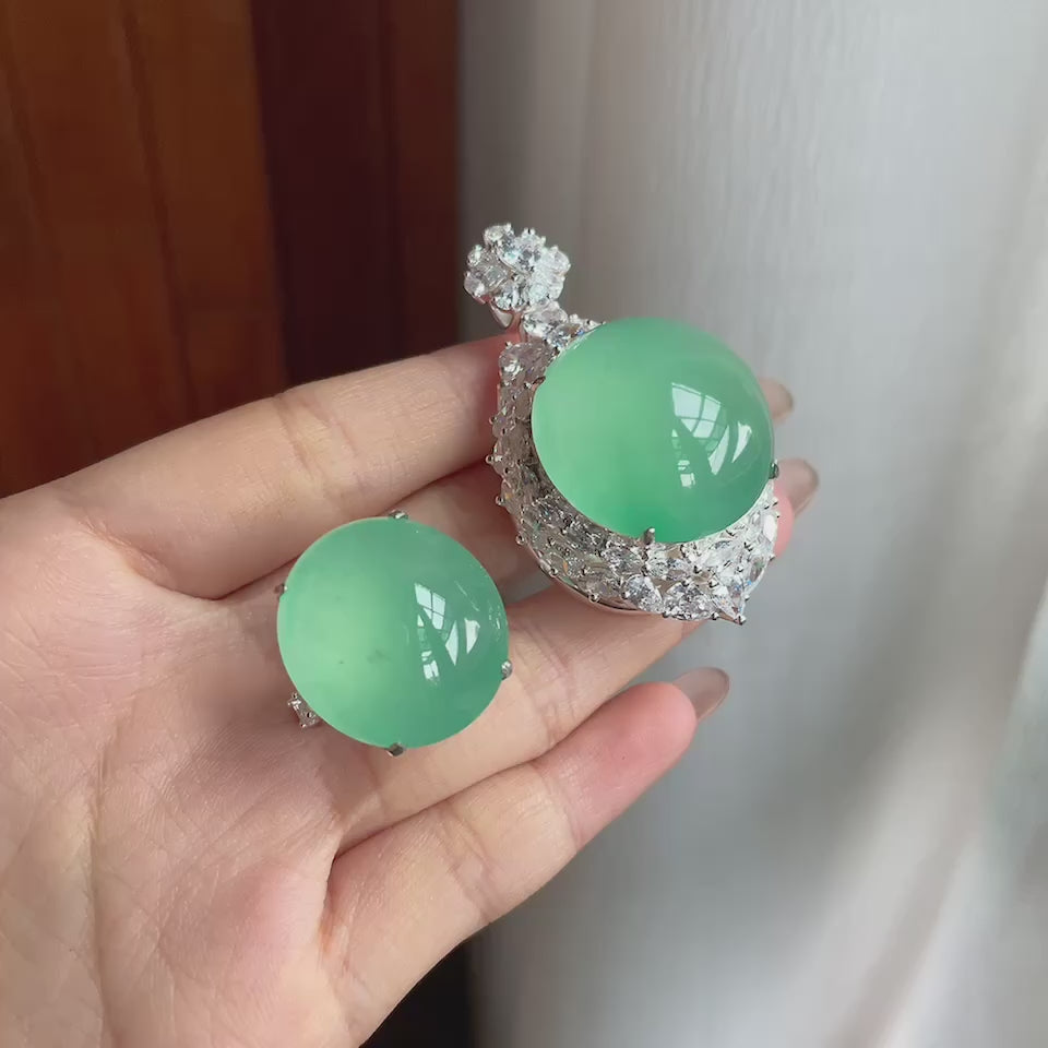 铜托冰种晴底翡翠鸽子蛋蛋面(yc197233)