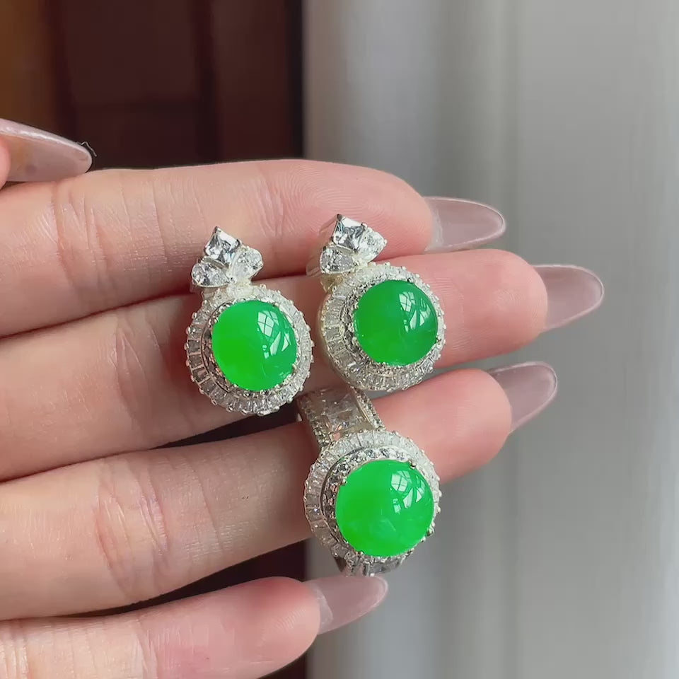 铜托冰种满绿翡翠满绿蛋面套(yc195194)