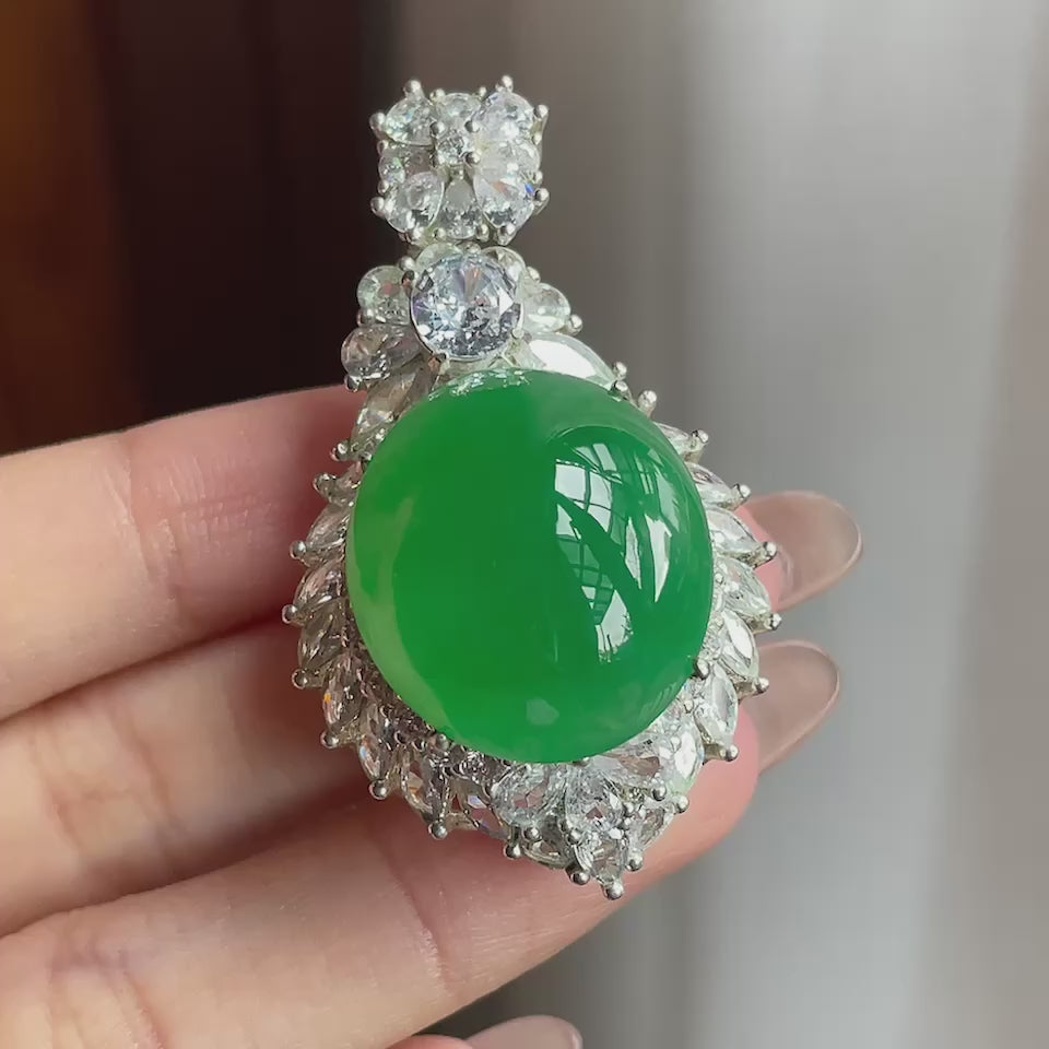 铜托糯冰种满绿翡翠蛋面(yc195181)