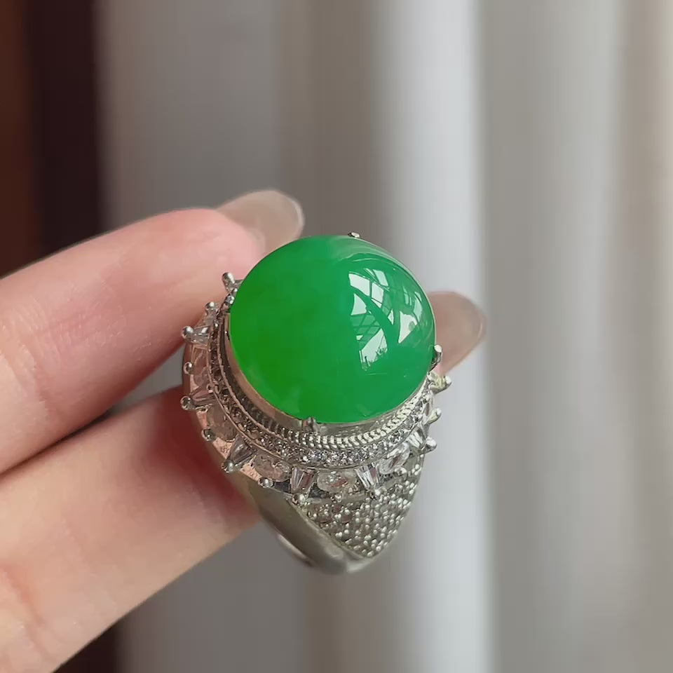 铜托糯冰种满绿翡翠蛋面(yc195182)