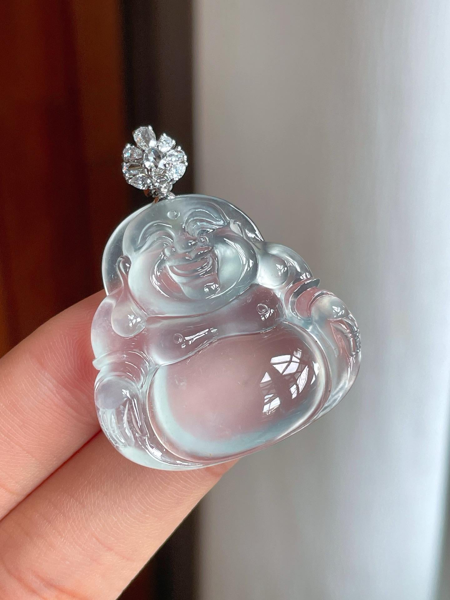 18k金扣冰玻种无色翡翠佛公(yc221911)