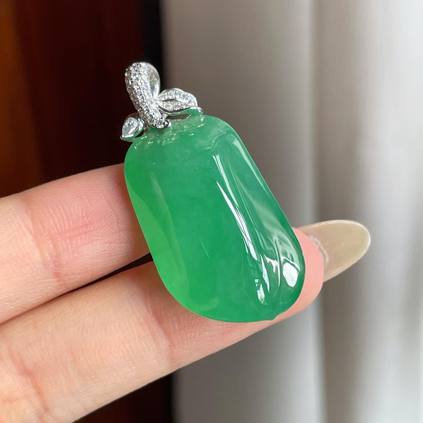 18k金扣冰种满绿翡翠福瓜(yc221887)