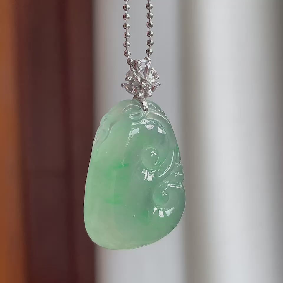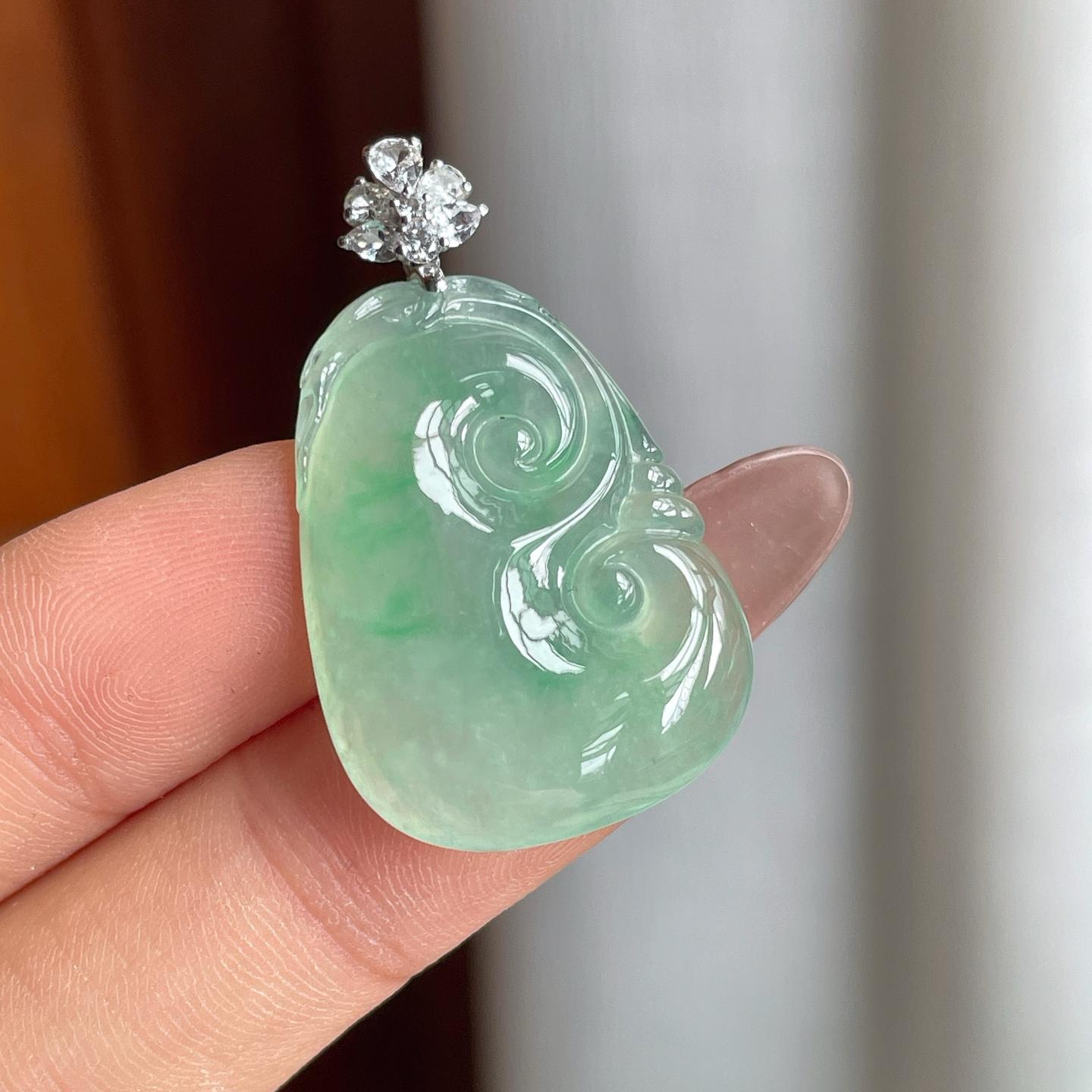 18k金扣冰种飘绿花翡翠如意(yc188398)