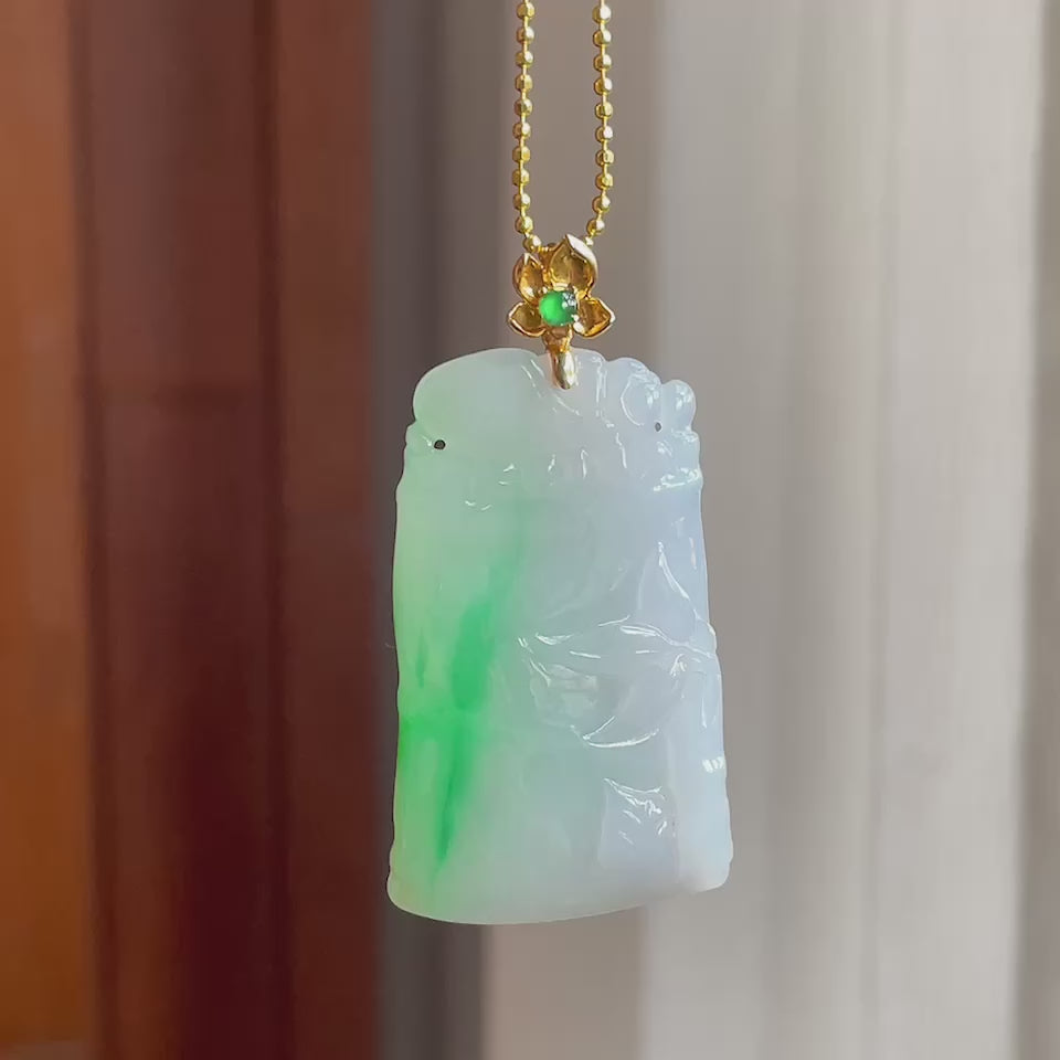 18k金扣糯冰种带色翡翠竹节挂件(yc187605)