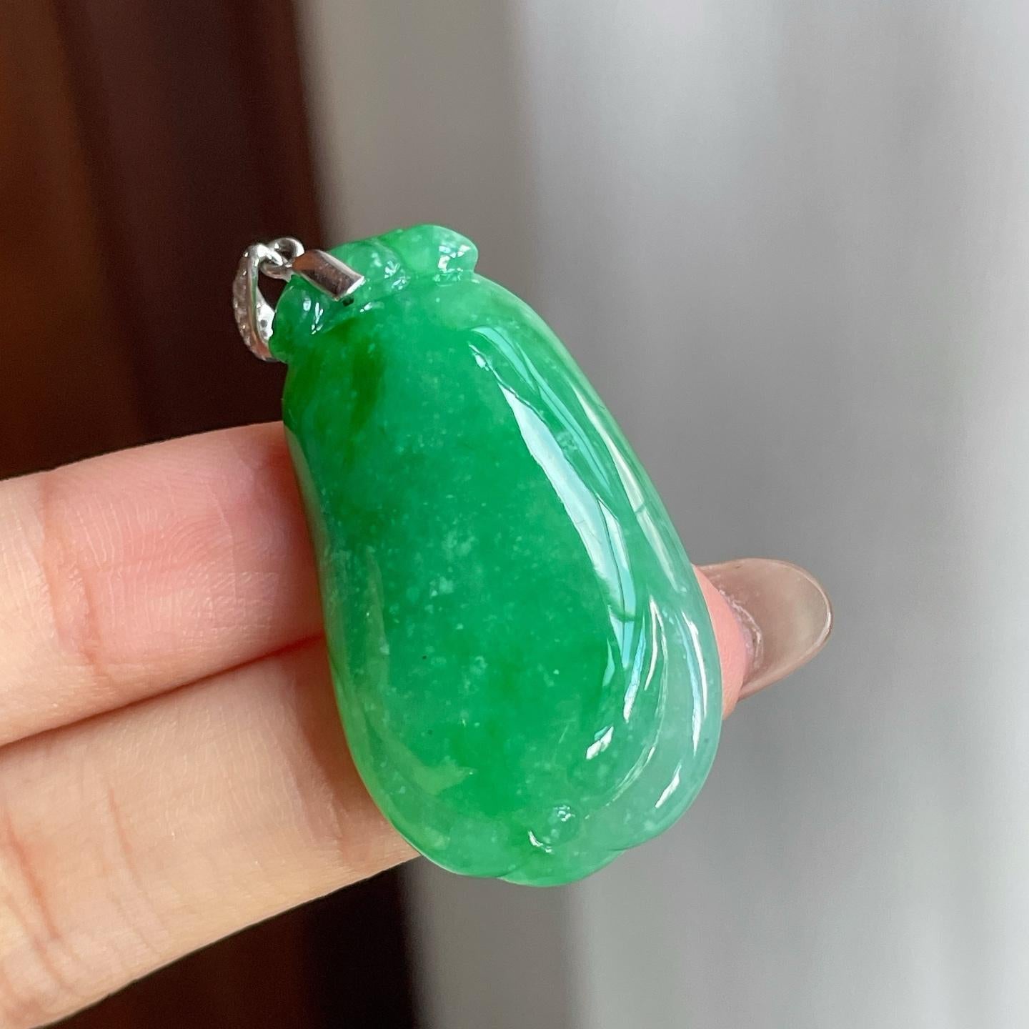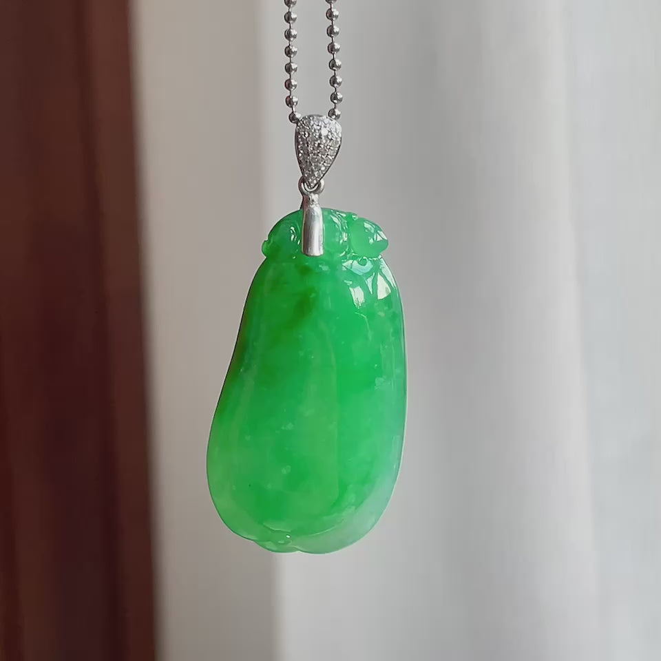 18k金扣糯冰种满绿飘阳绿翡翠福瓜挂件(yc187467)