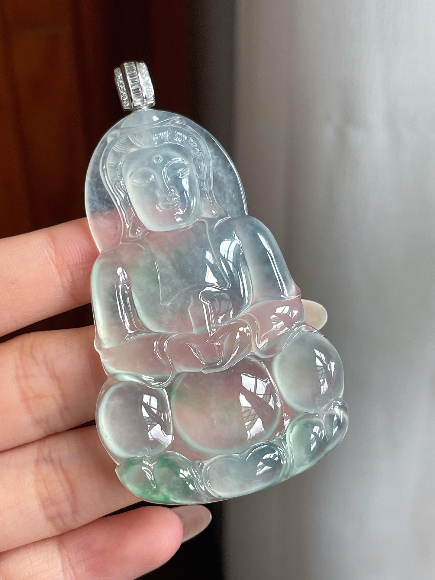 18k金钻扣冰玻种飘花翡翠观音(yc207396)
