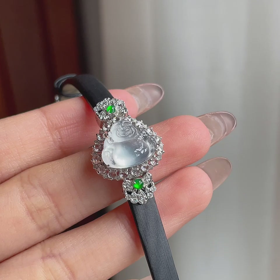 18k金钻镶冰玻种无色翡翠佛公手链(yc174519)