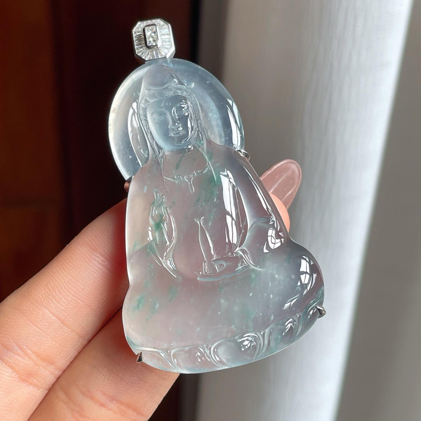 18k金钻镶冰玻种飘花翡翠观音(yc190959)
