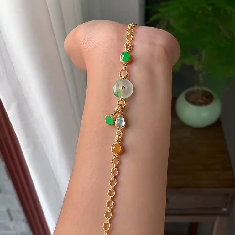 18k金钻镶冰种多彩平安扣手链(yc191934)