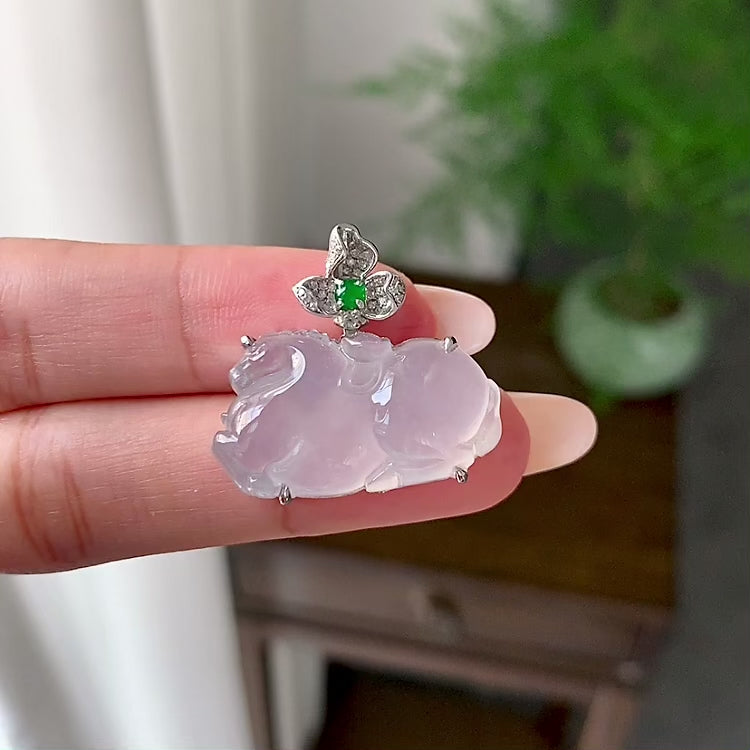 18k金钻镶冰种无色唐马吊坠(yc193363)