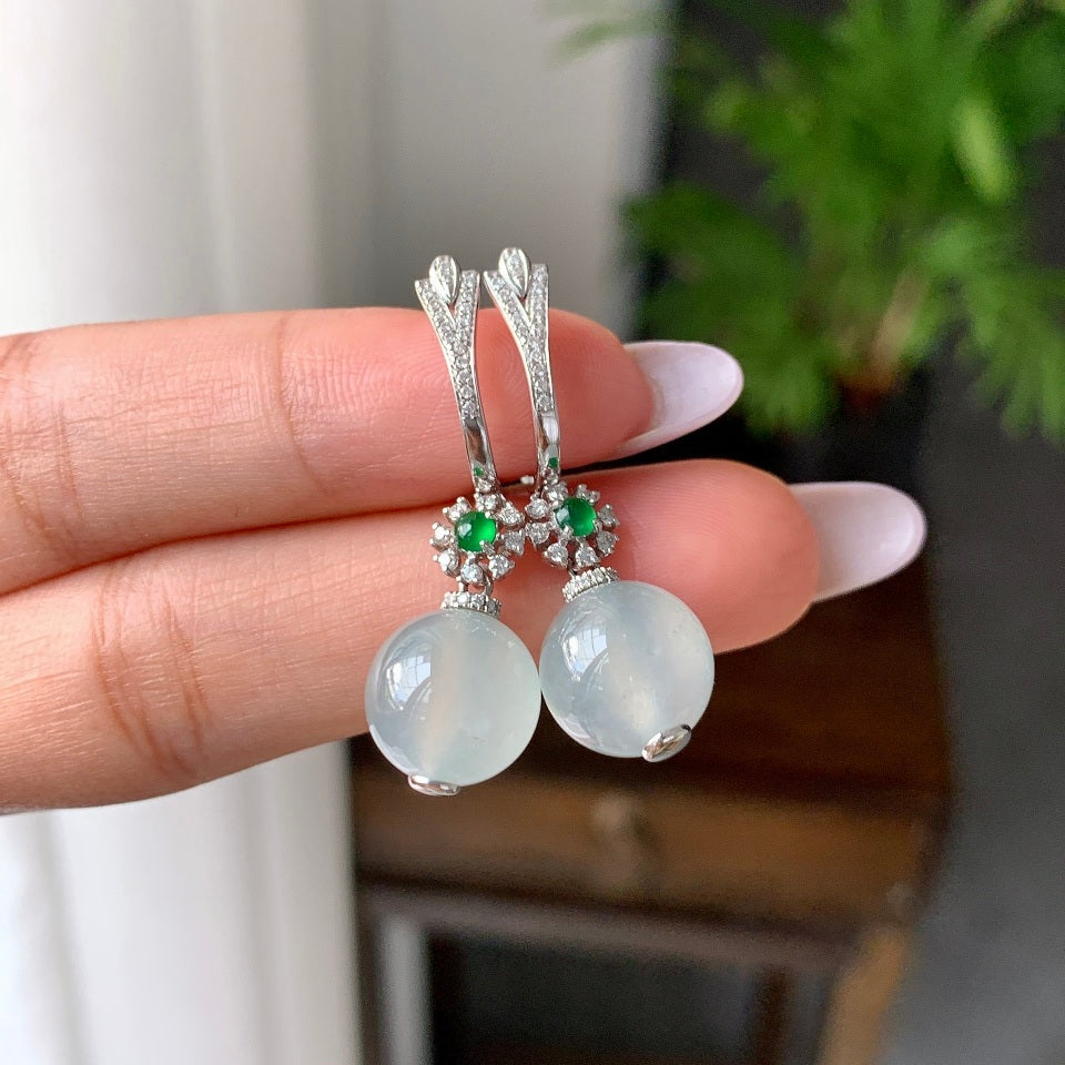 18K金钻镶冰种无色圆珠耳环(yc172188)