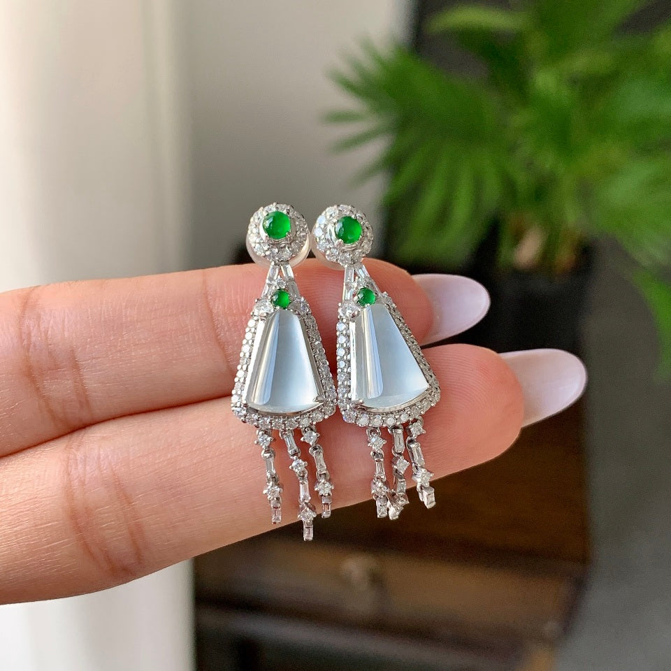 18K金钻镶冰种无色无事牌耳环(yc171130)