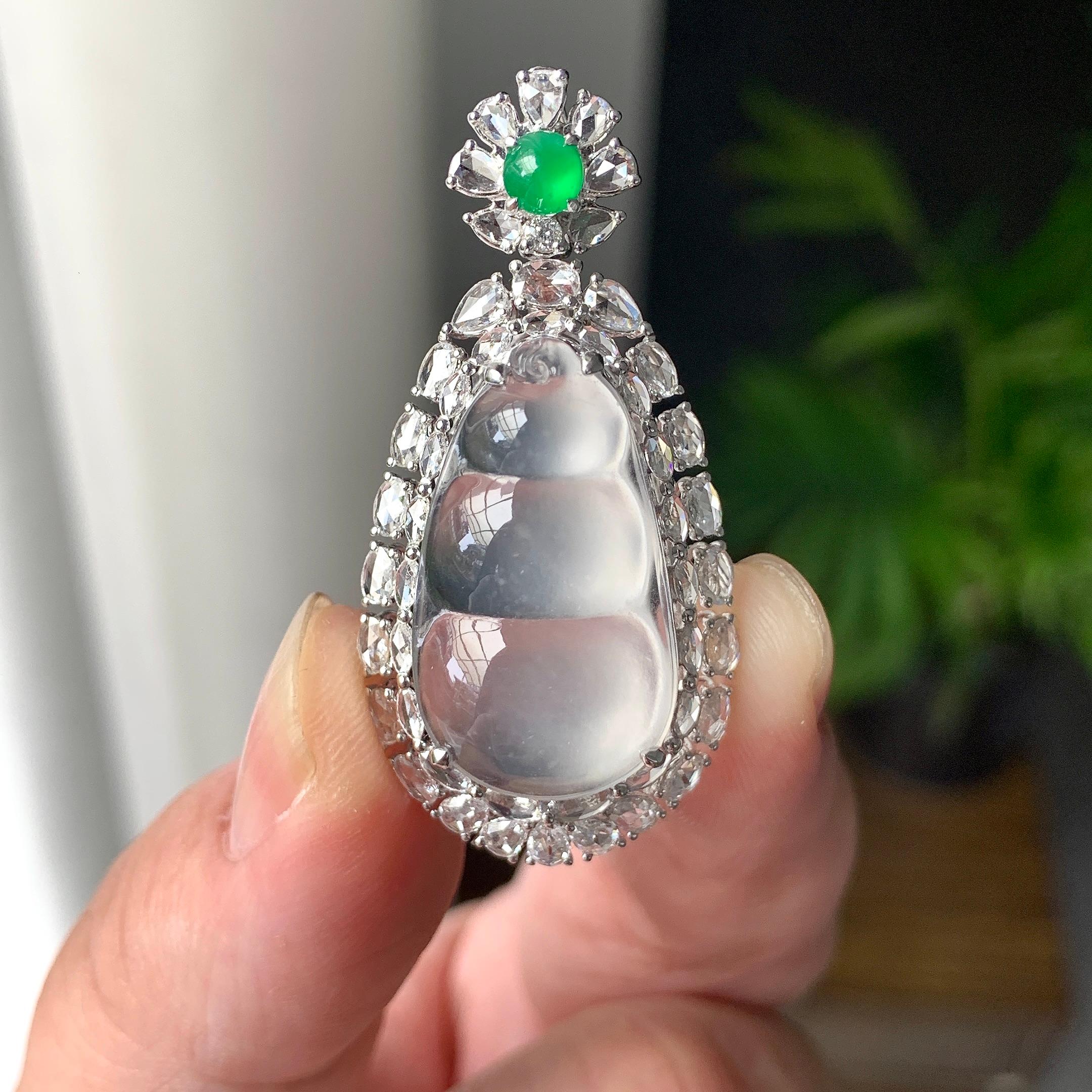 18K金钻镶冰种无色福豆吊坠(yc202987)
