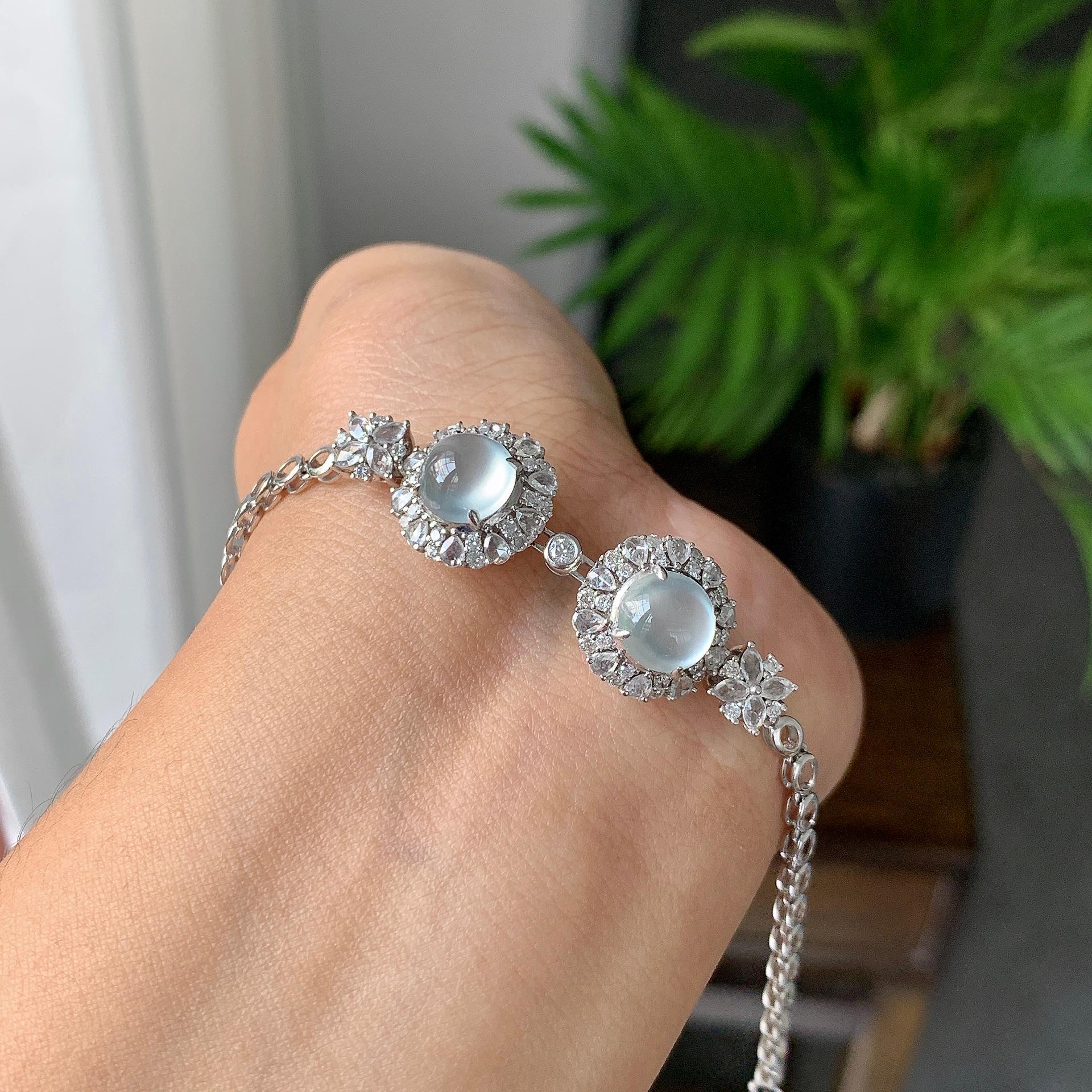 18K金钻镶冰种无色蛋面耳环/吊坠/手链(三用款)(yc179624)