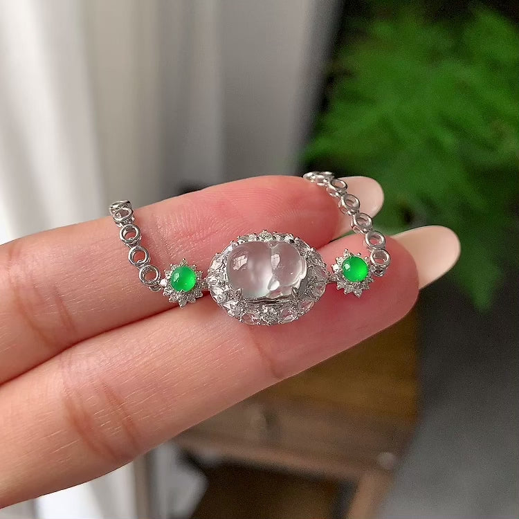 18k金钻镶冰种无色貔貅手链(yc197709)