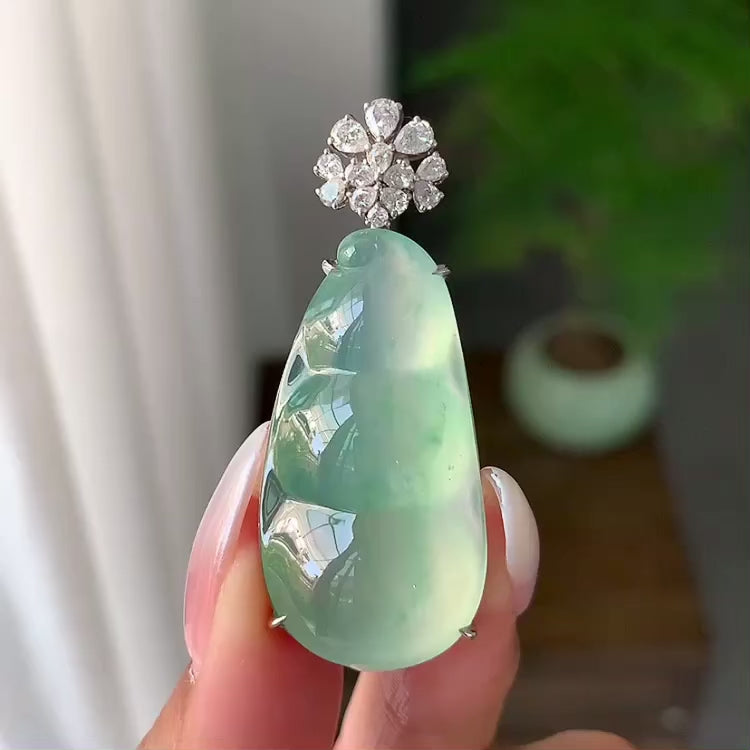 18k金钻镶冰种晴水飘花福豆吊坠(yc191924)