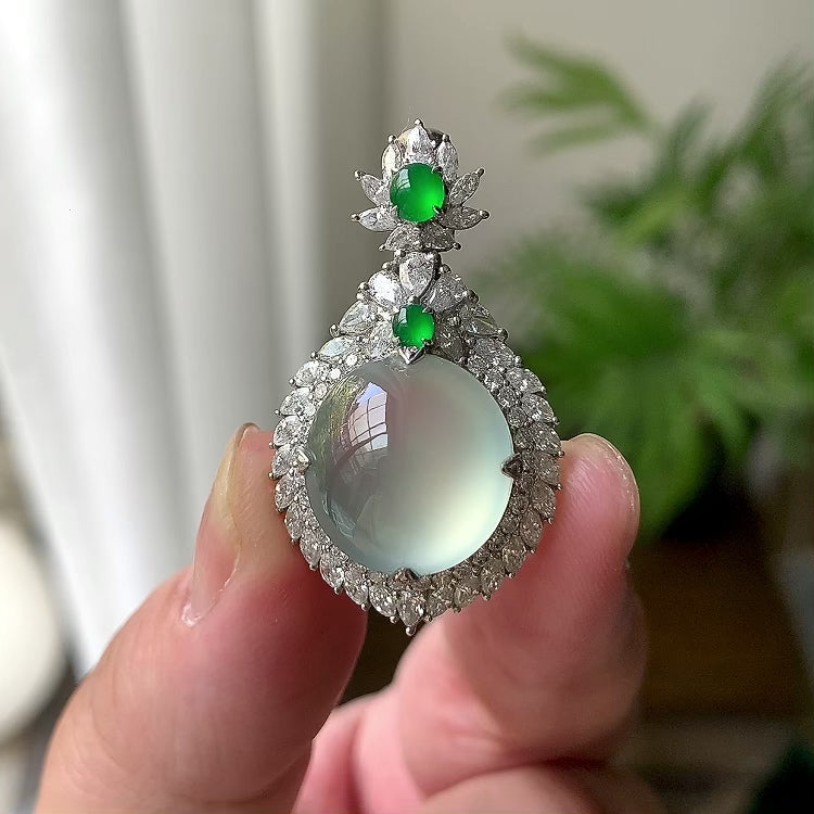 18K金钻镶冰种淡晴底蛋面吊坠(yc190821)