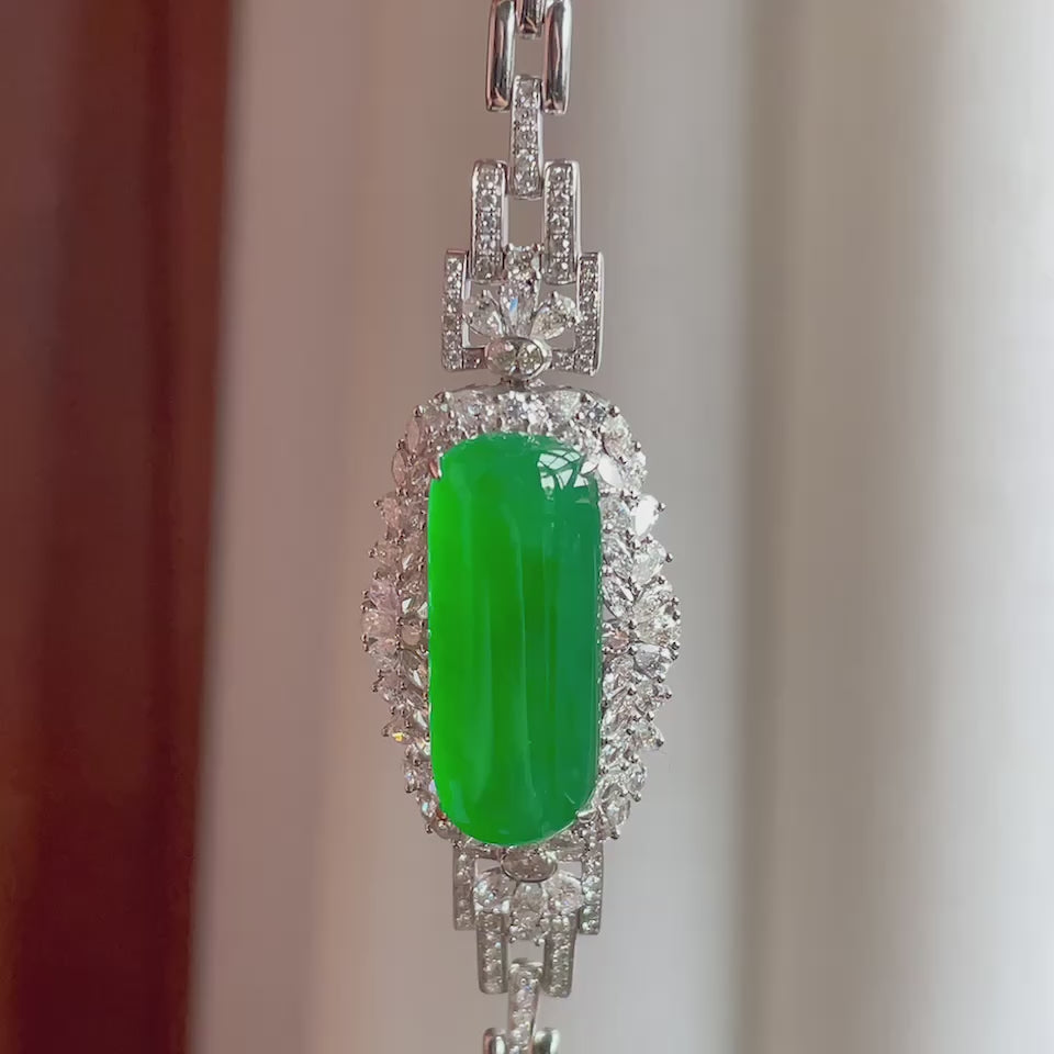 18k金钻镶冰种满绿手链(yc171716)
