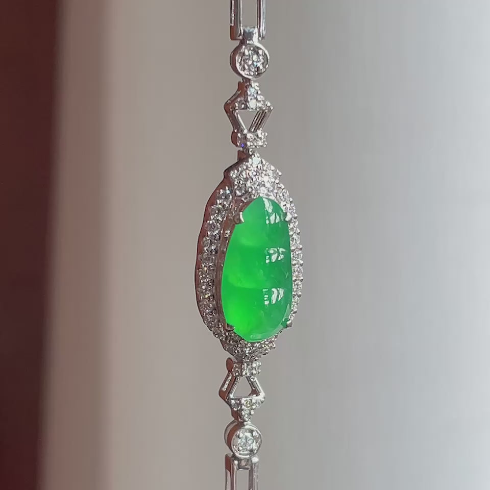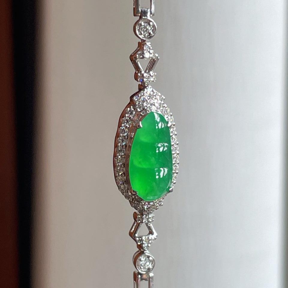 18k金钻镶冰种满绿翡翠豆子手链(yc165272)