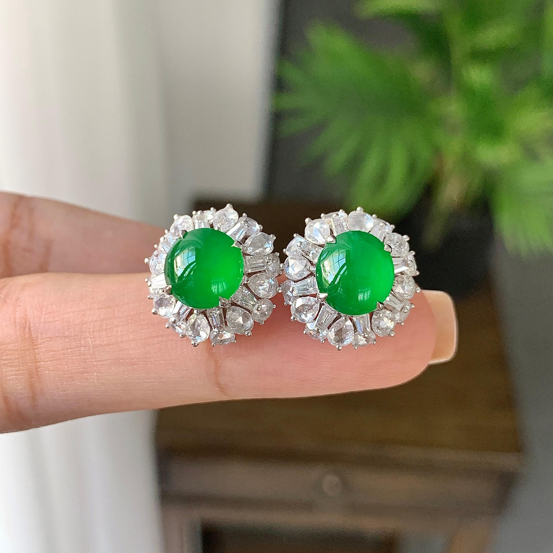 18k金钻镶冰种满绿蛋面耳钉(yc226987)