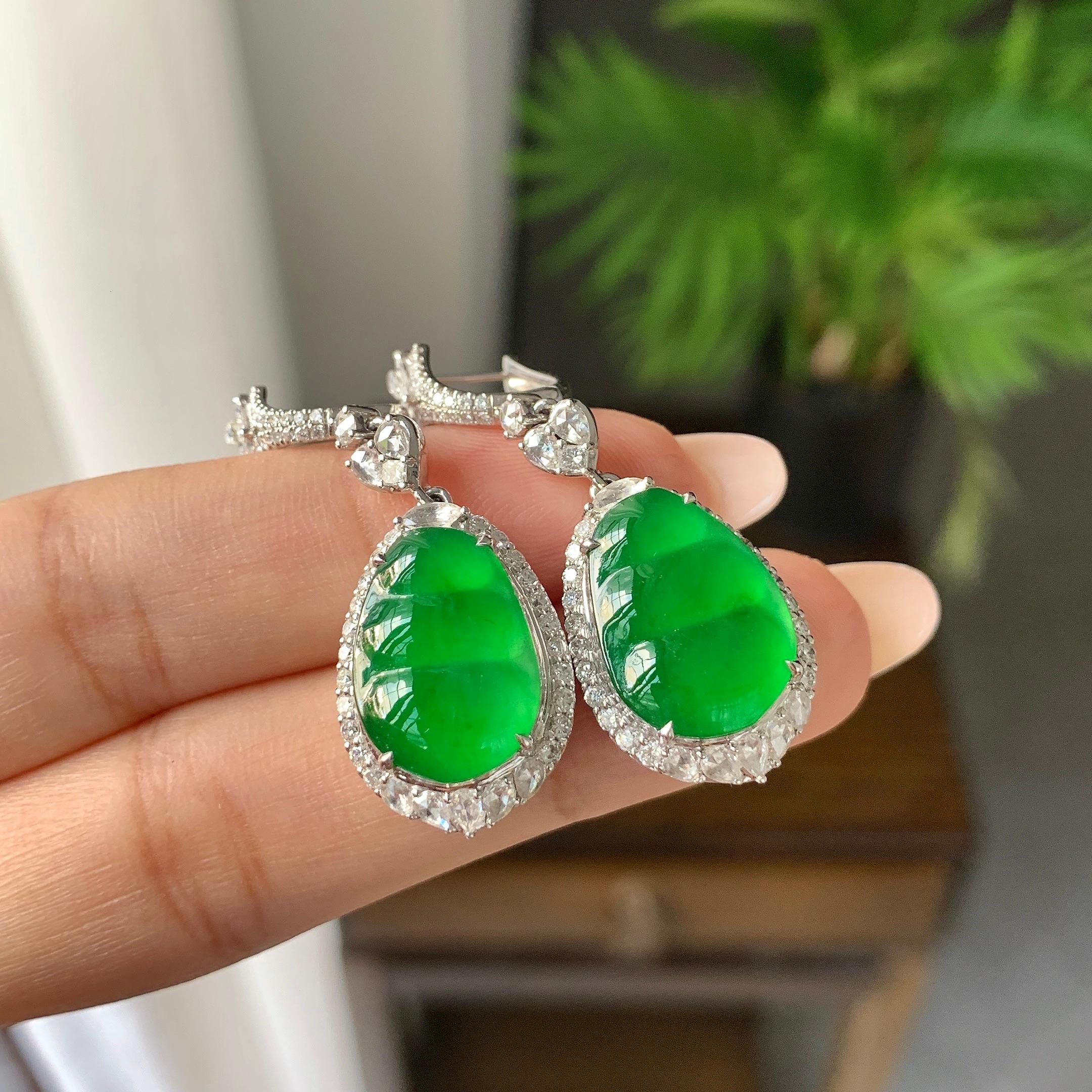 18K金钻镶冰种阳绿福豆耳环(yc187282)