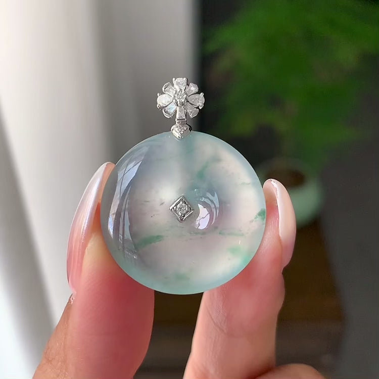 18k金钻镶冰种飘花平安扣吊坠(yc191940)