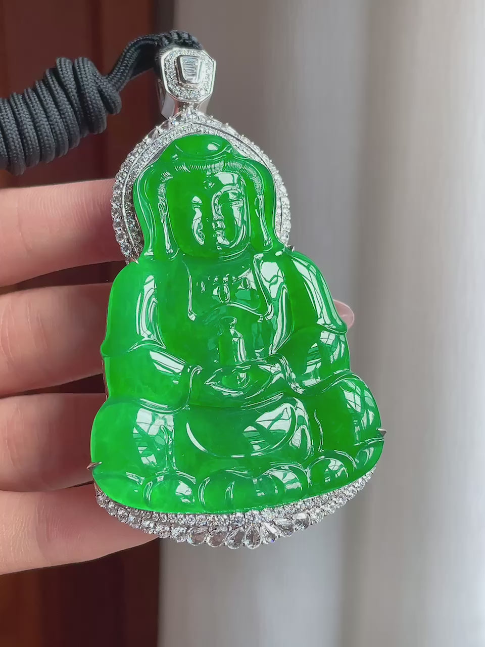 18k金钻镶糯冰满绿翡翠大观音(yc186041)