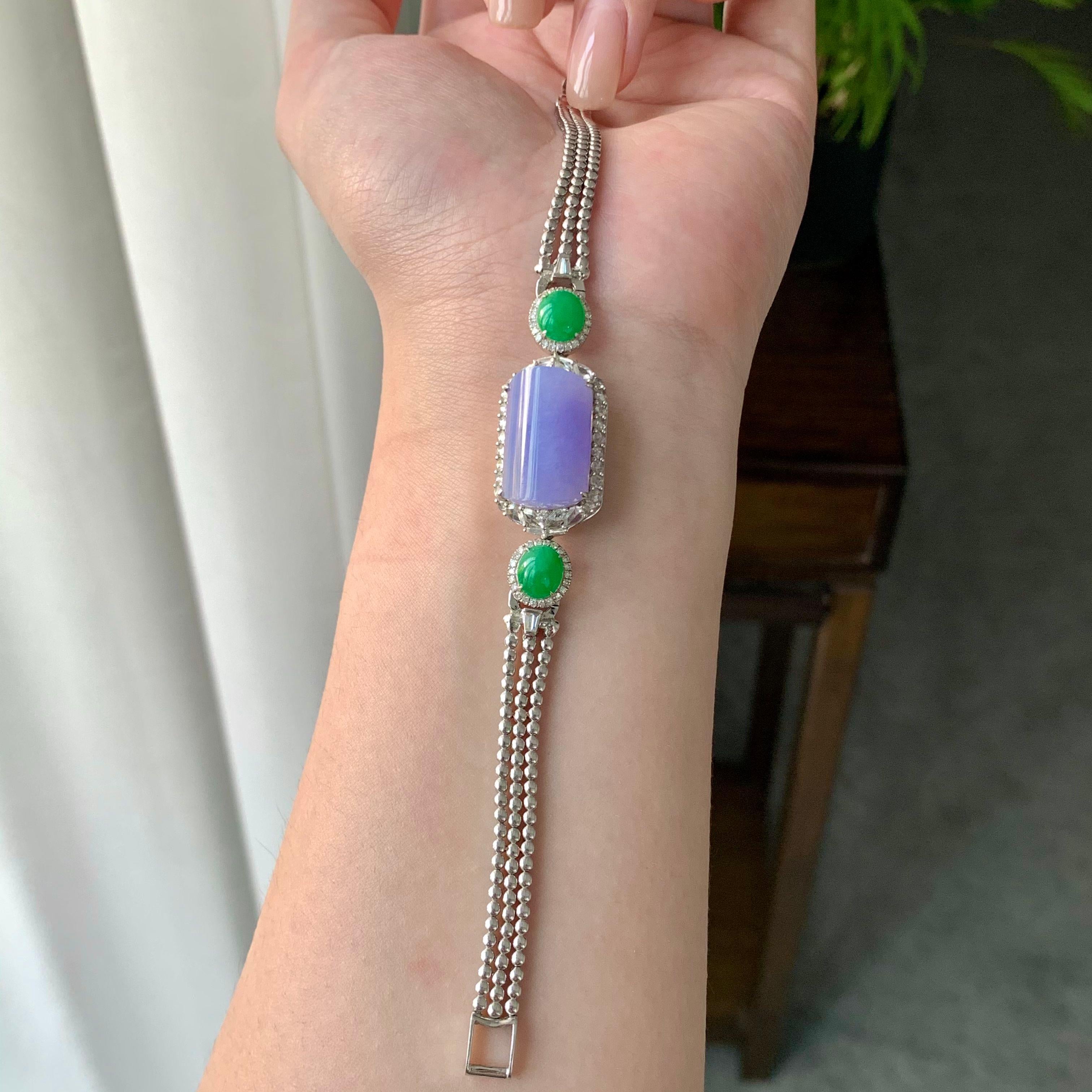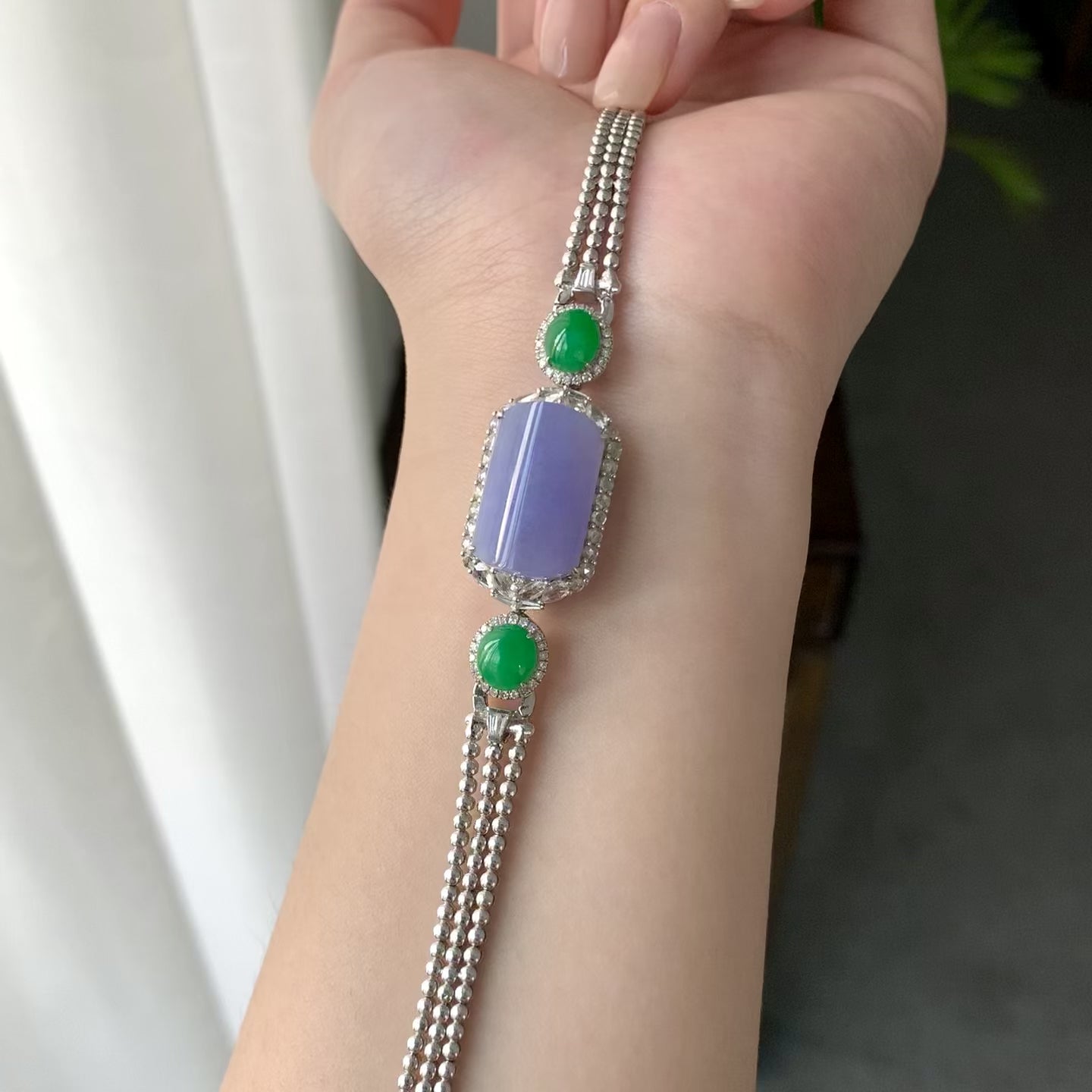 18k金钻镶糯冰种多彩无事牌手链/吊坠(两用款)(yc180788)