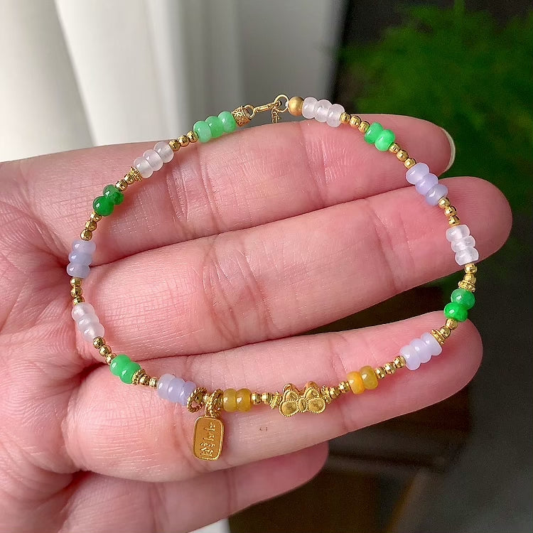 18K金钻镶糯冰种多彩算盘珠手链(yc191933)