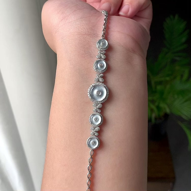 18K金钻镶糯冰种无色平安扣手链(yc173835)