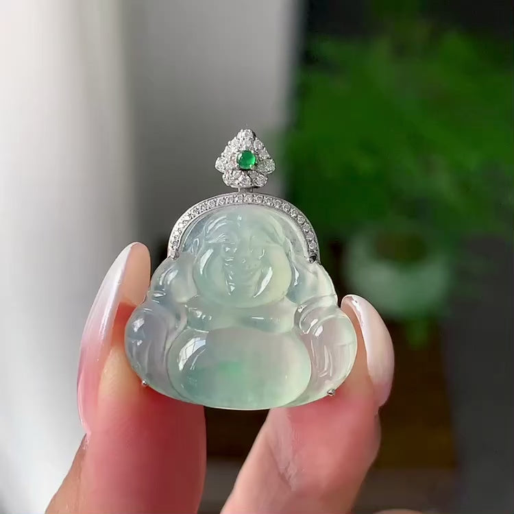 18k金钻镶糯冰种晴水佛公吊坠(yc193369)