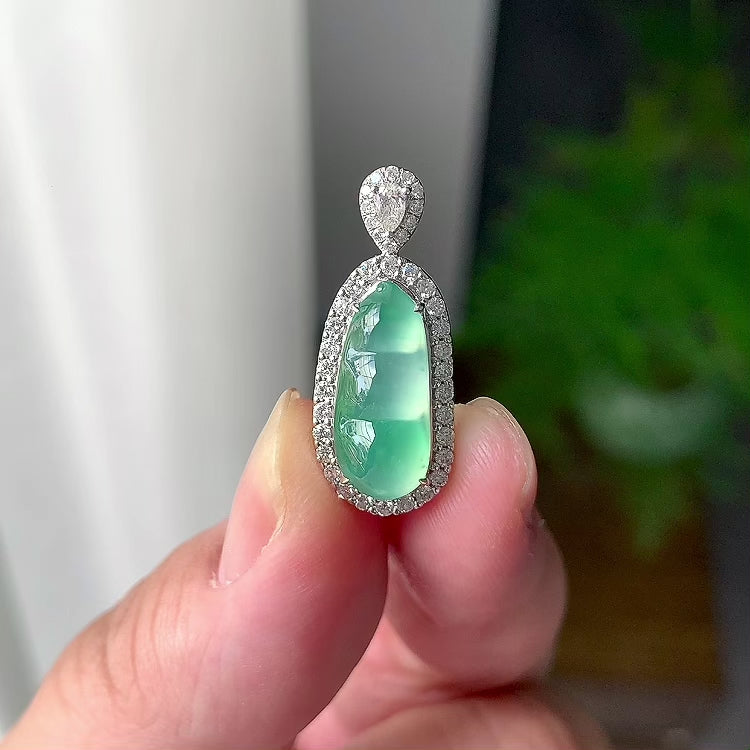 18K金钻镶糯冰种晴水福豆吊坠(yc193352)